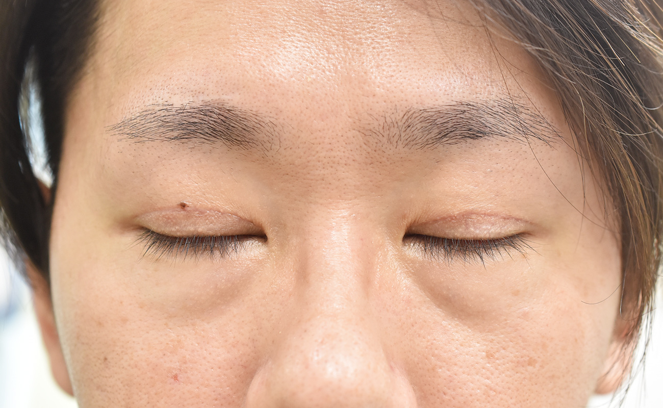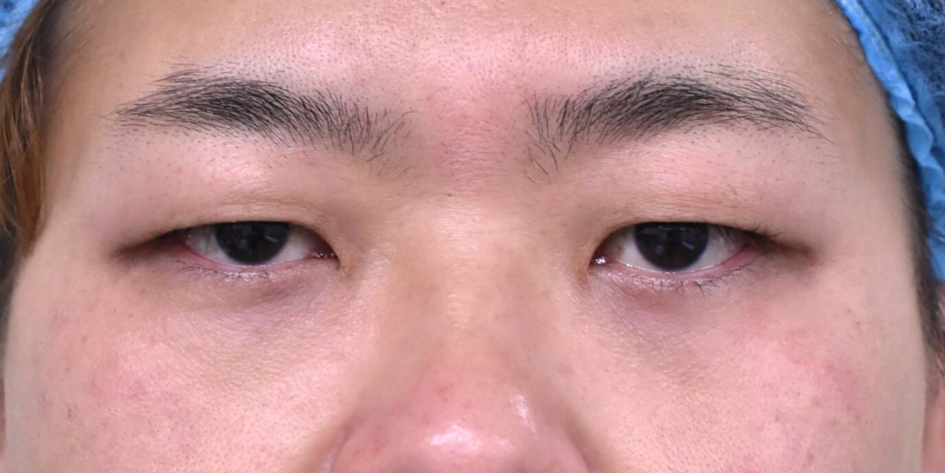 男性の場合は、一般的に控えめな二重幅が好まれるため、奥二重のような幅にしています。患者様には、自然な仕上がりに喜んでいただきました。