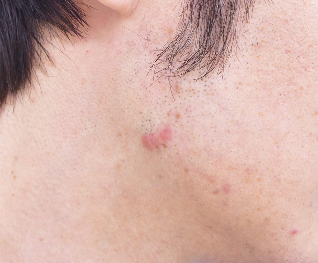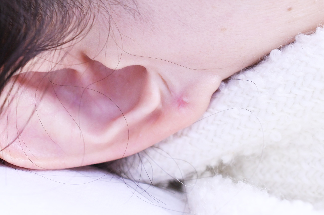 赤みを伴ったケロイドに対してケナコルト注射とVlaser照射を行った症例になります。ニキビ跡がひどくなると、ざ瘡と呼ばれるケロイドを伴ったふくらみができる場合があります。保険診療では改善が見られなかったため、当院にてケナコルトと呼ばれるステロイドをの局所注射を行い、赤みは赤みの改善効果のあるVlaser照射をそれぞれ数回行いました。
