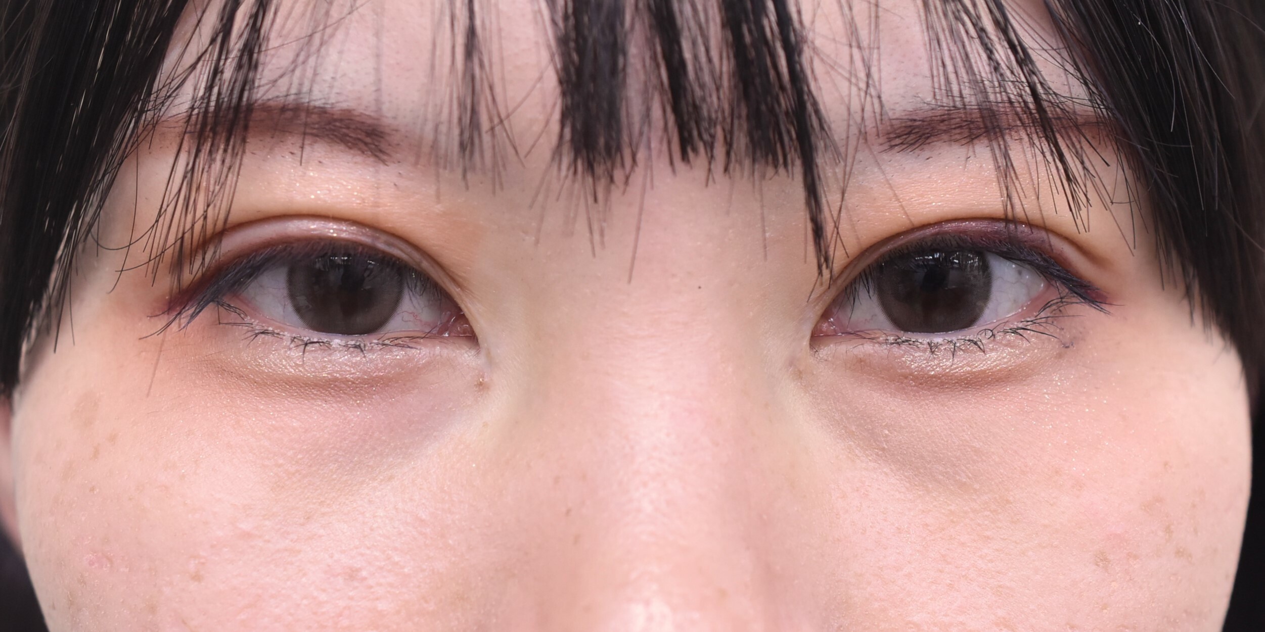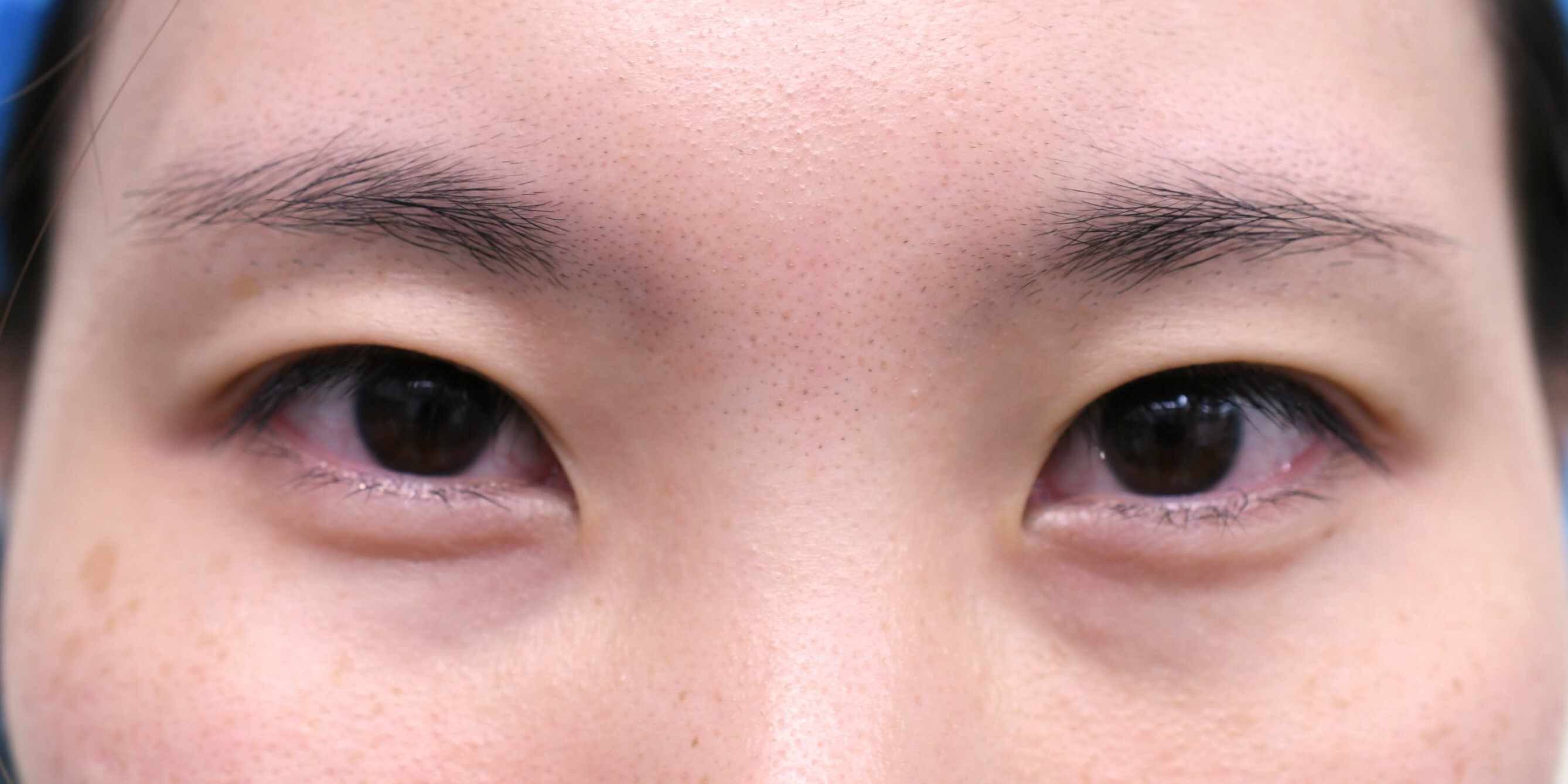60代女性の全切開法+眼瞼下垂修正症例になります。加齢による上眼瞼のたるみと眼瞼下垂を治したいとの希望にて前記手術を行いました。二重幅は9.5mmたるみ切除幅は左右それぞれ、3mm、4.5mmと差をつけて切除しました。まつ毛に皮膚のかぶさりもあった為、併せて逆さまつ毛修正もしています。眼瞼下垂は、挙筋を正常な位置に再度固定することで目の開きを正常化しています。