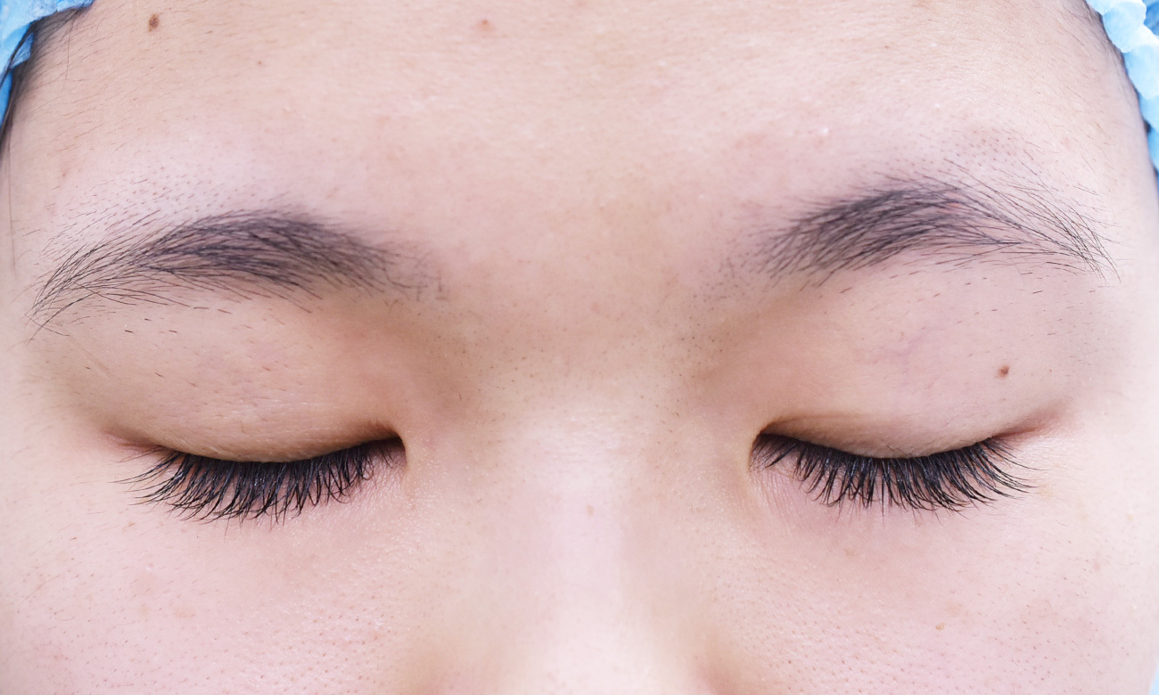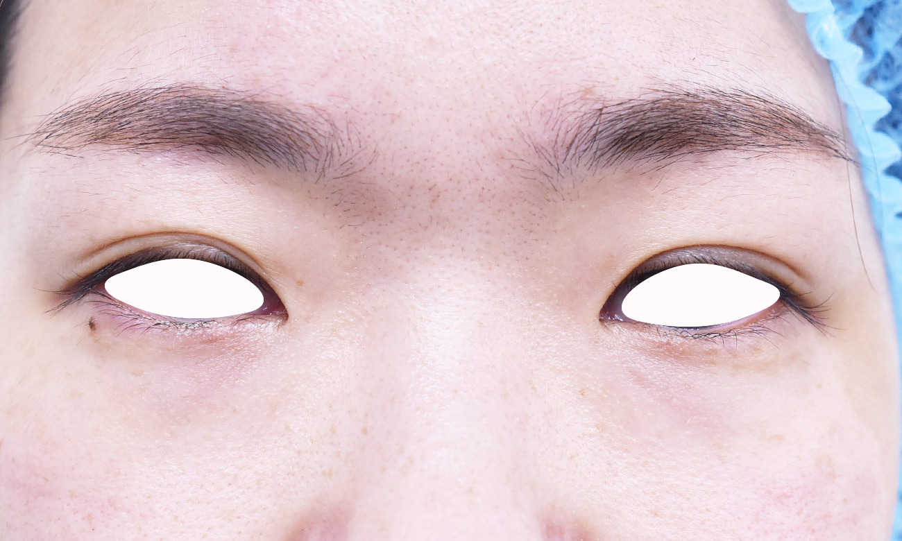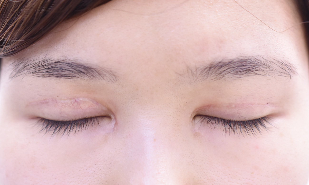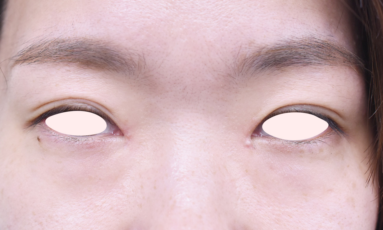 20代女性の全切開法+目頭切開Z法での症例になります。 狭めの末広型を、幅を広げて平行型にされたいとの希望にて、前記手術を行いました。 二重幅は9mm 逆さまつ毛修正を併せて行っています。 目頭切開は、とがった目頭を希望されたため、W法ではなく、Z法を行っています。