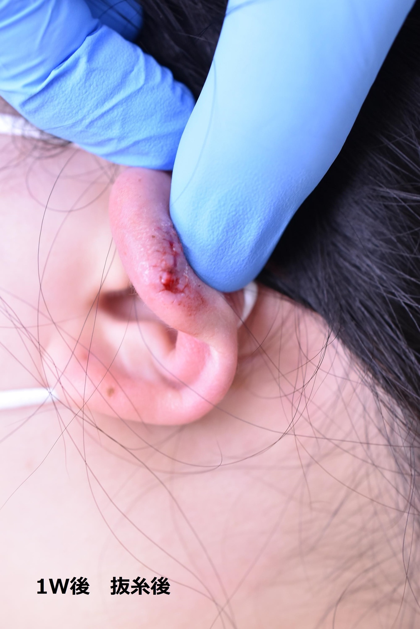 目立つので切除したいとの希望にて、局所麻酔での切除を行っています。術後のお写真は1ヶ月後ですが、きれいになくなっています。ただし同部位にピアッシングをすると再発する可能性がある為、注意が必要です。