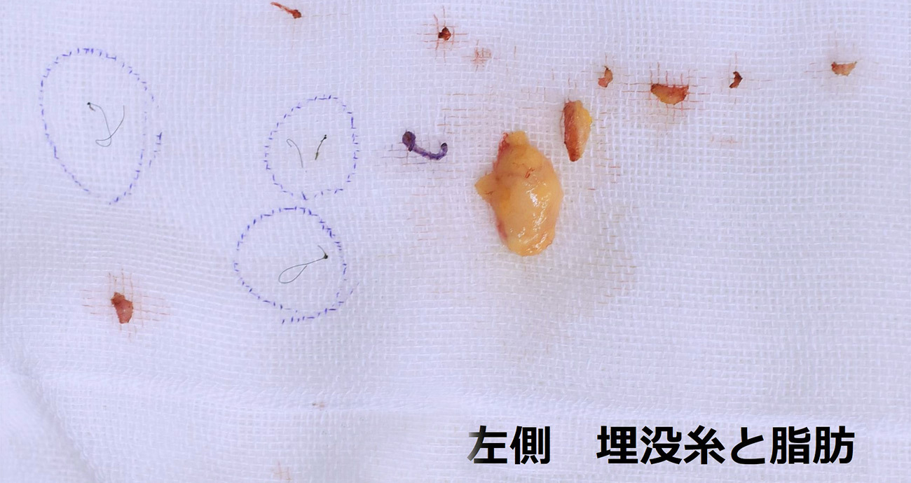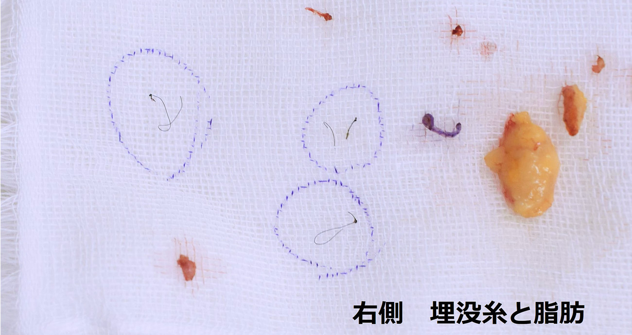 ラインの短さ・違和感・埋没糸の透け具合・感染・しこり・埋没糸の露出・血液貯留・