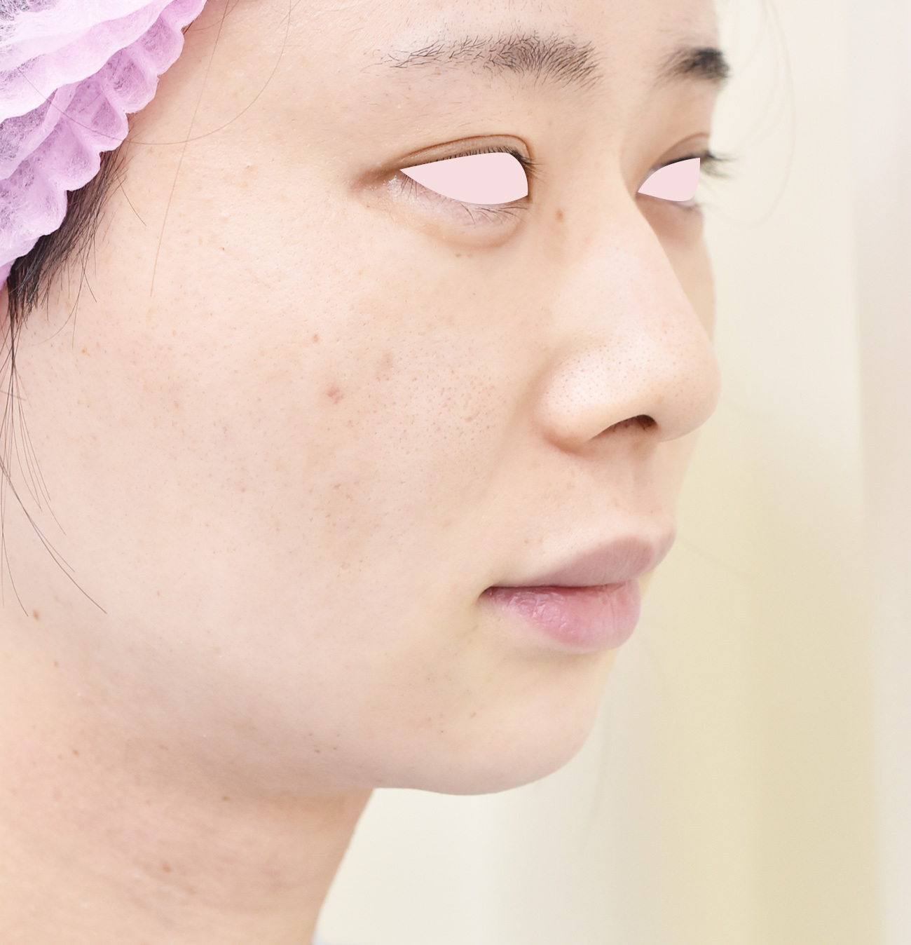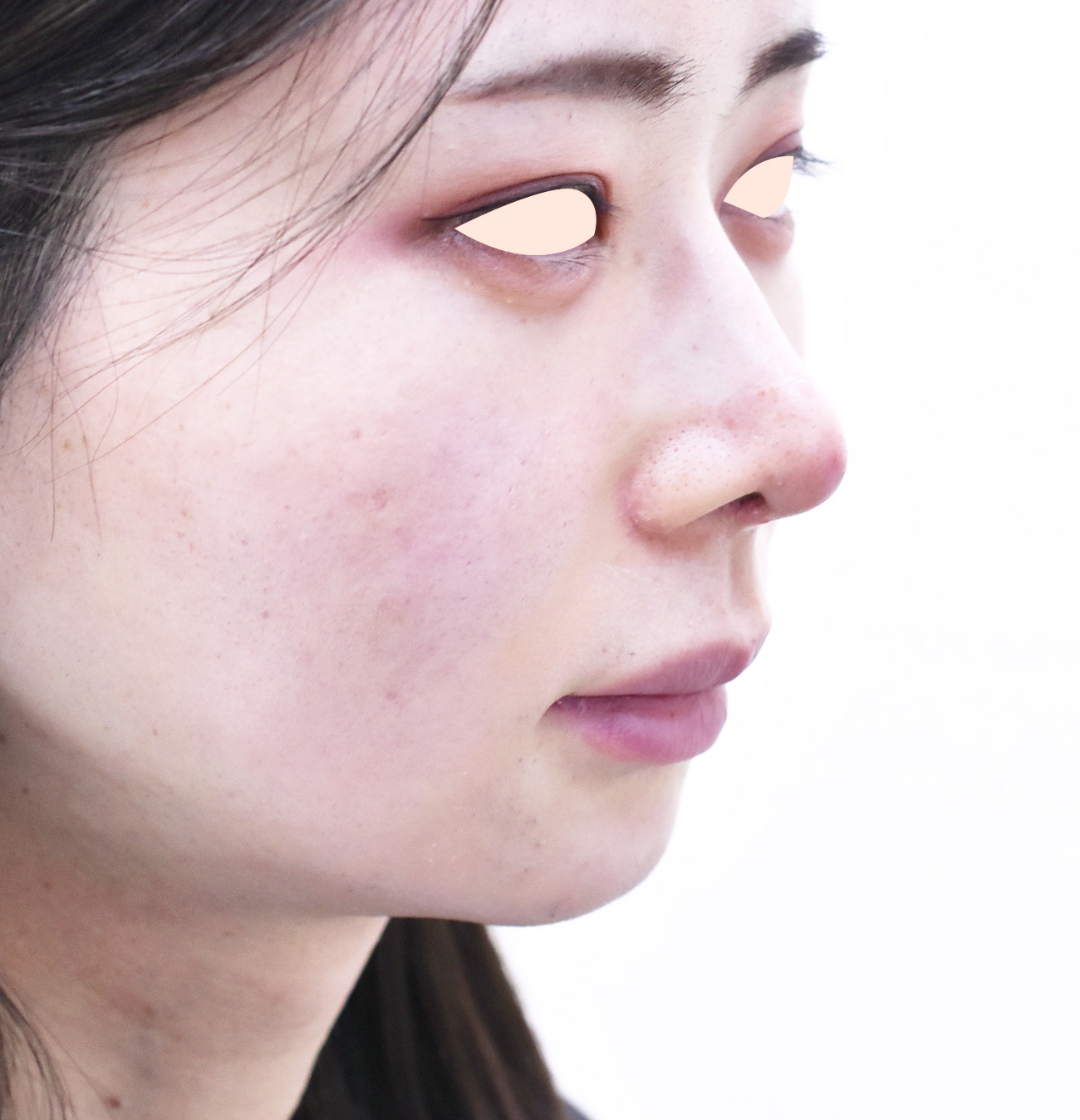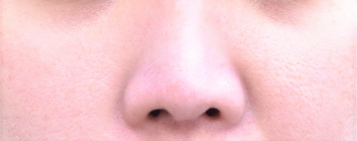 鼻尖縮小では鼻尖は細くなっても、アップノーズ気味になります。 耳介軟骨を合わせて使用することで鼻尖をななめ下方向に延長しています。 術後写真は3か月後ですが、6か月後でもほとんど形は変わっておらず、ptには喜んでいただいています。