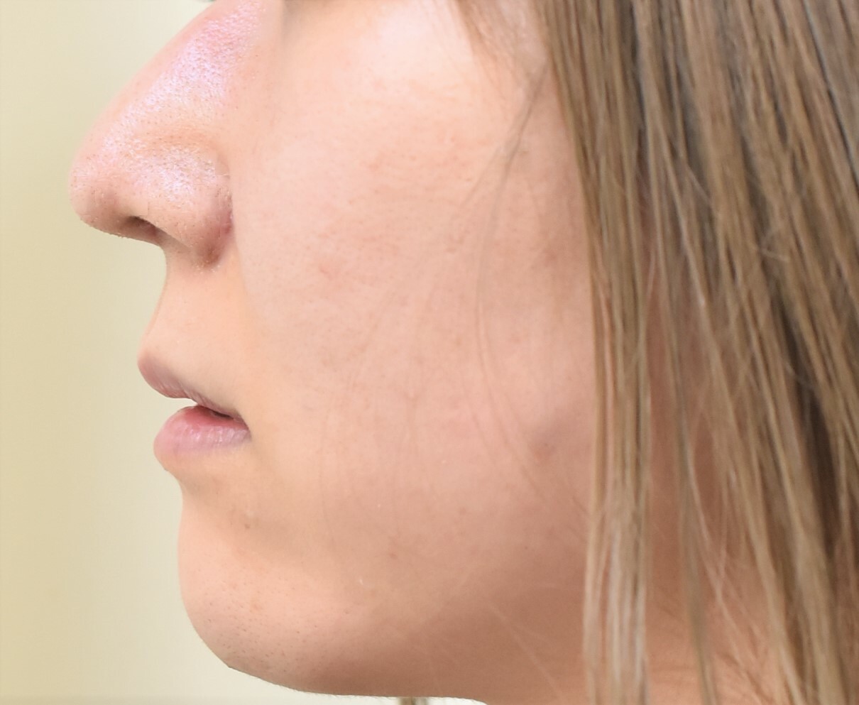 30代女性の鼻中隔延長、鼻翼縮小外側切除症例です。患者様は、鼻筋、特に鼻尖を細くしたいのと、鼻翼の付け根が下がっているのを治したいというご希望にて来院されました。 そこで鼻中隔延長で鼻尖の先端を下に下げ鼻翼縮小外側切除で鼻翼の付け根を頭側に移動させています。 術後写真は1M後のものですが、自然な鼻筋で鼻翼の形状も整えることができました。