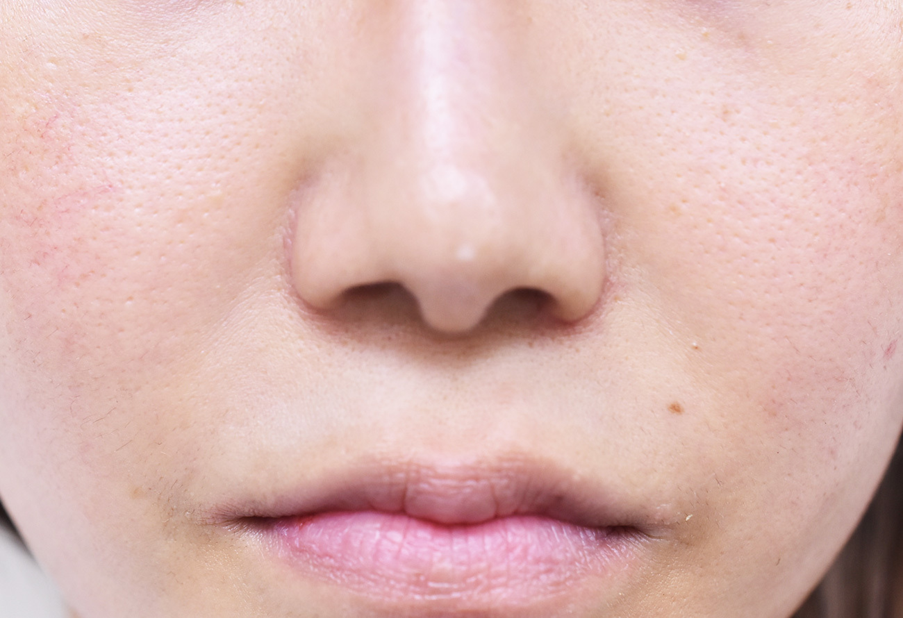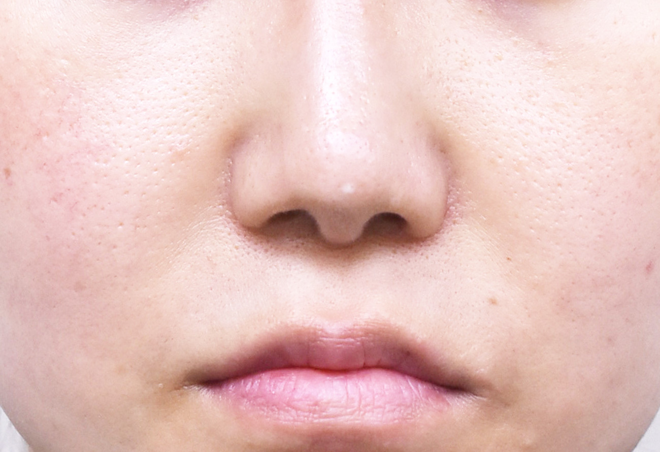 30代女性の鼻翼縮小外側切除症例になります。鼻翼の横幅と、見えている鼻孔を小さくしたいとの希望にて鼻翼縮小外側切除を行いました。手術の効果としては、それ以外に鼻翼の付け根を相対的に上方にずらす効果があります。