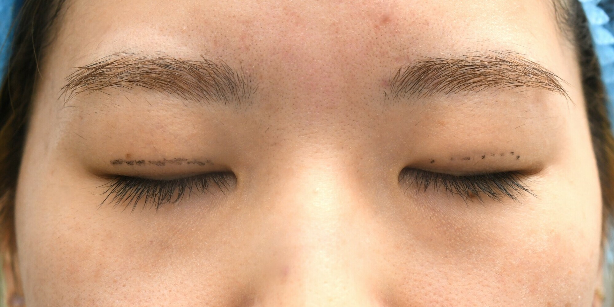 20代女性の全切開法+目頭切開の症例になります。ハム目を避けつつ、ぱっちり二重にしたいとの希望にて全切開法と、Z法による目頭切開を行いました。ハム目になりやすいのは、広い二重幅、特に平行型にする場合、アイプチかぶれがある場合などがあります。