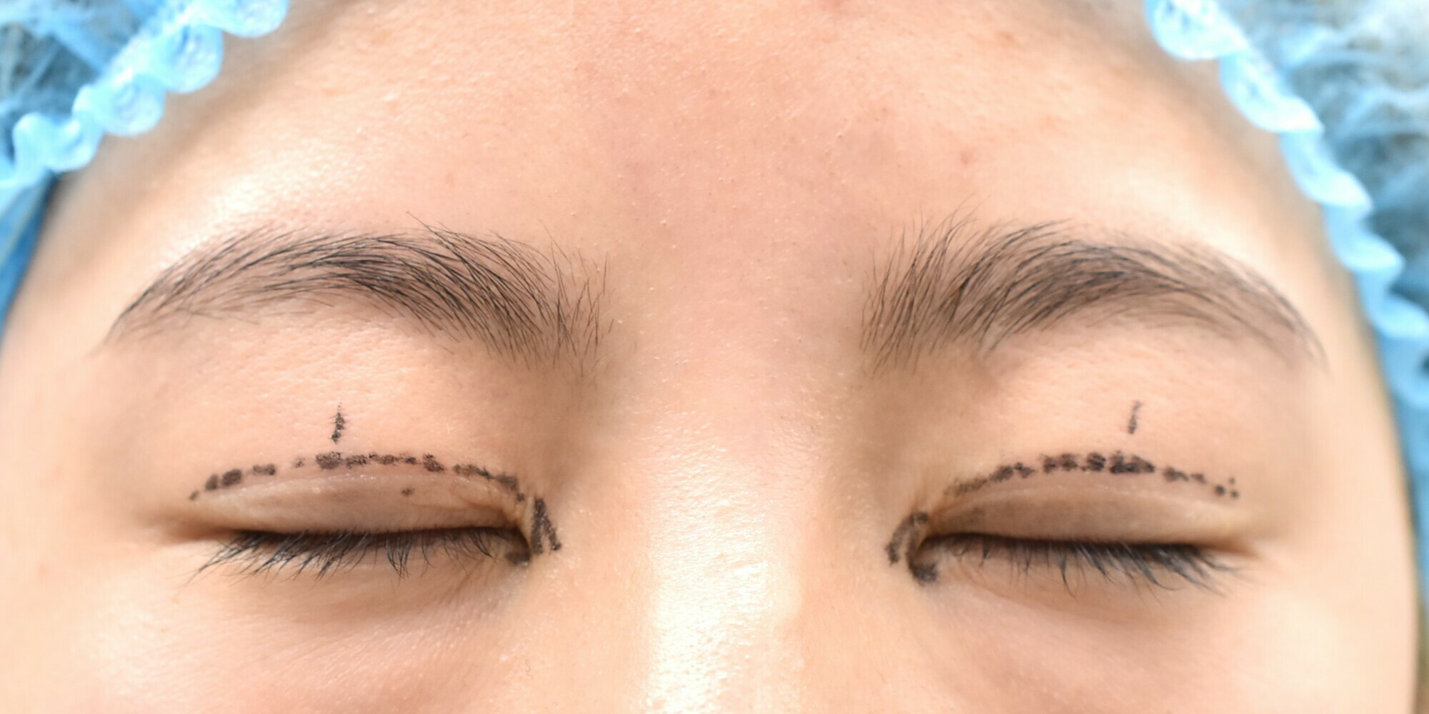 目頭切開は、目頭をとがらせる目的でZ法を選択、2mm幅で行いました。