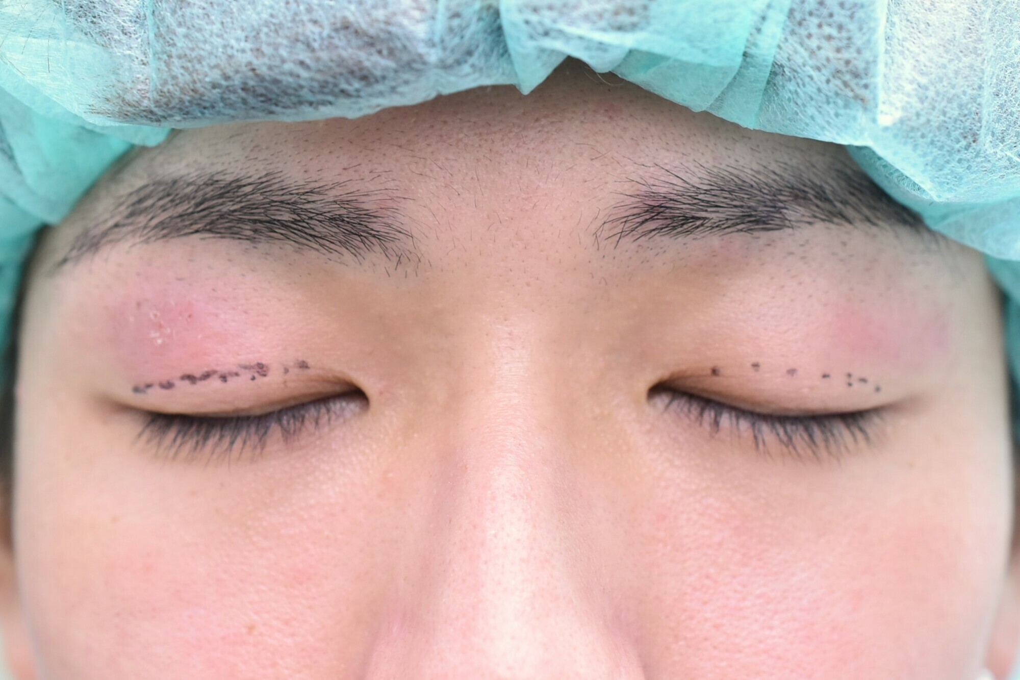 20代 男性の埋没法症例になります。患者様は自然な二重を作りたいとの希望にて埋没法おこなっています。