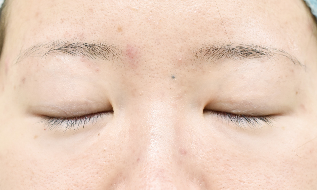 20代女性の全切開法+目頭切開症例になります。二重幅をひろげて平行型に近づけたいとの希望にて、前記手術を行いました。