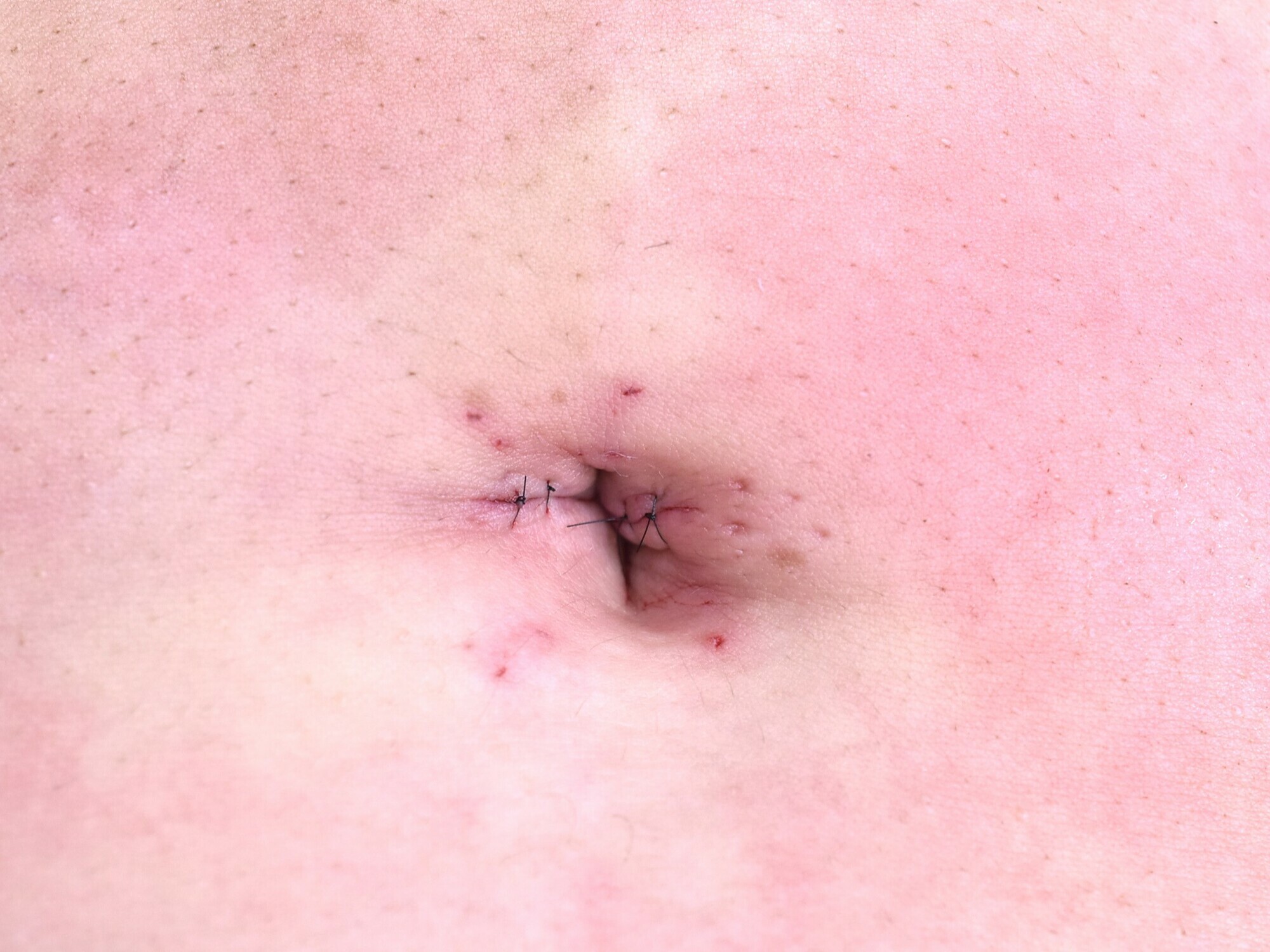 傷は、へその穴から行い、機械吸引で約350cc吸引しています。