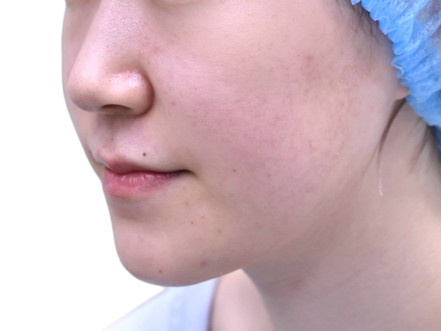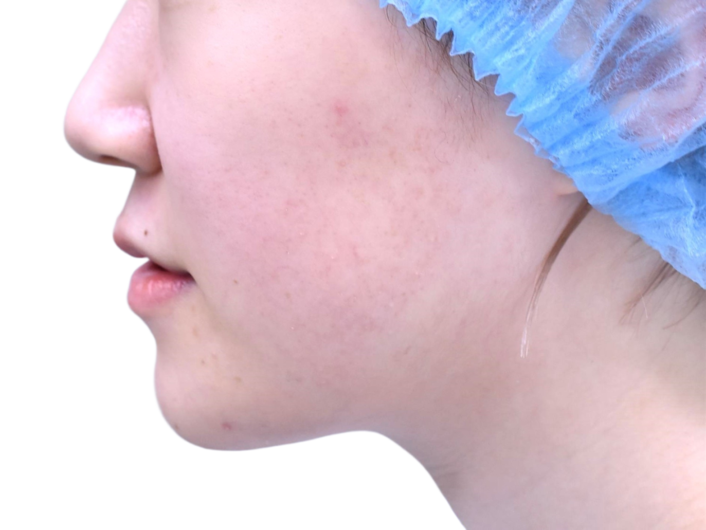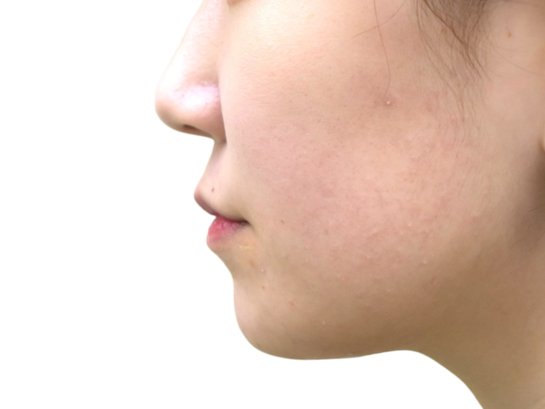 20代女性の下顎骨ブーメラン型骨切り術症例になります。小顔にしたい、顎先をとがらせたいとの希望にて、オトガイ先端の切除幅を控えめにしたブーメラン型切除を行いました。左右ともに最大幅7.5mm幅にて切除行っています。術後の2重顎も数回の脂肪溶解注射にて改善しています。