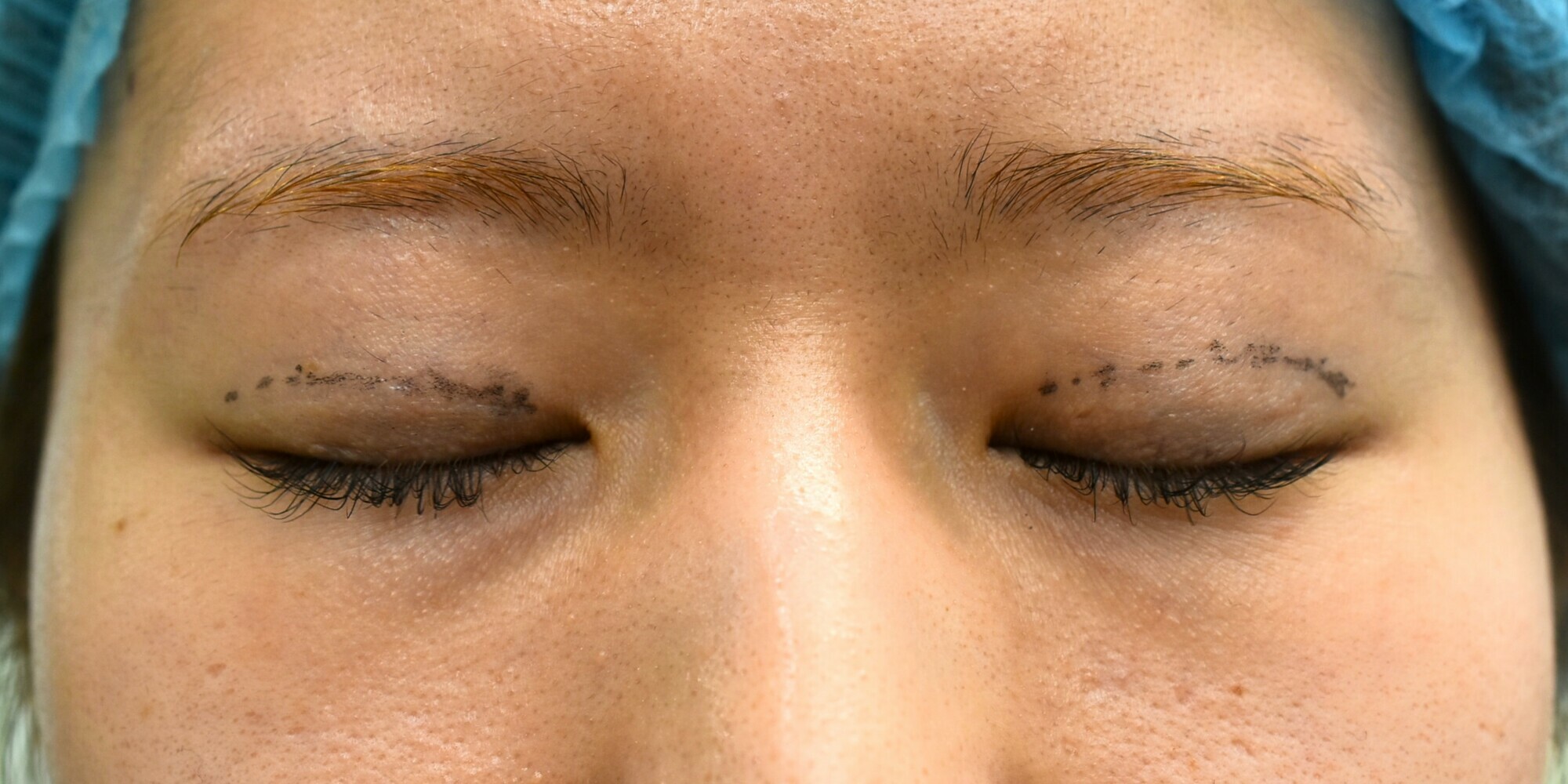 20代女性の全切開法症例になります。二重幅を広げたいとの希望にて、前記手術をおこなっています。