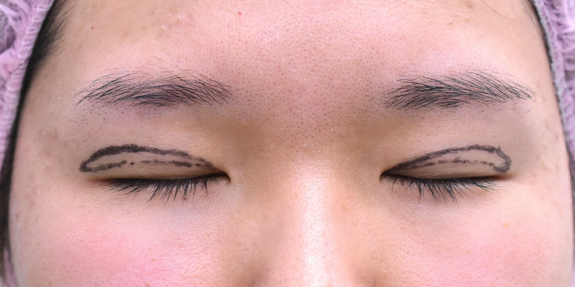 脱脂と挙筋腱膜の前転法で目の開き幅を調整し、併せて逆さまつ毛の治療もおこなっています。