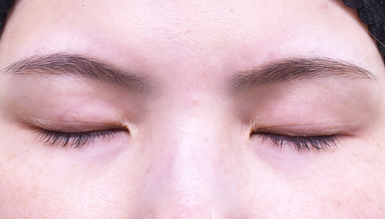 術後写真では、腫れぼったさの改善、目の開きの改善ができました。