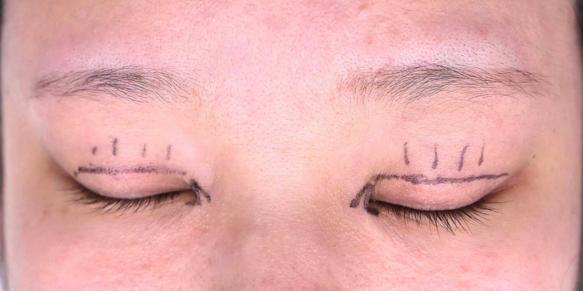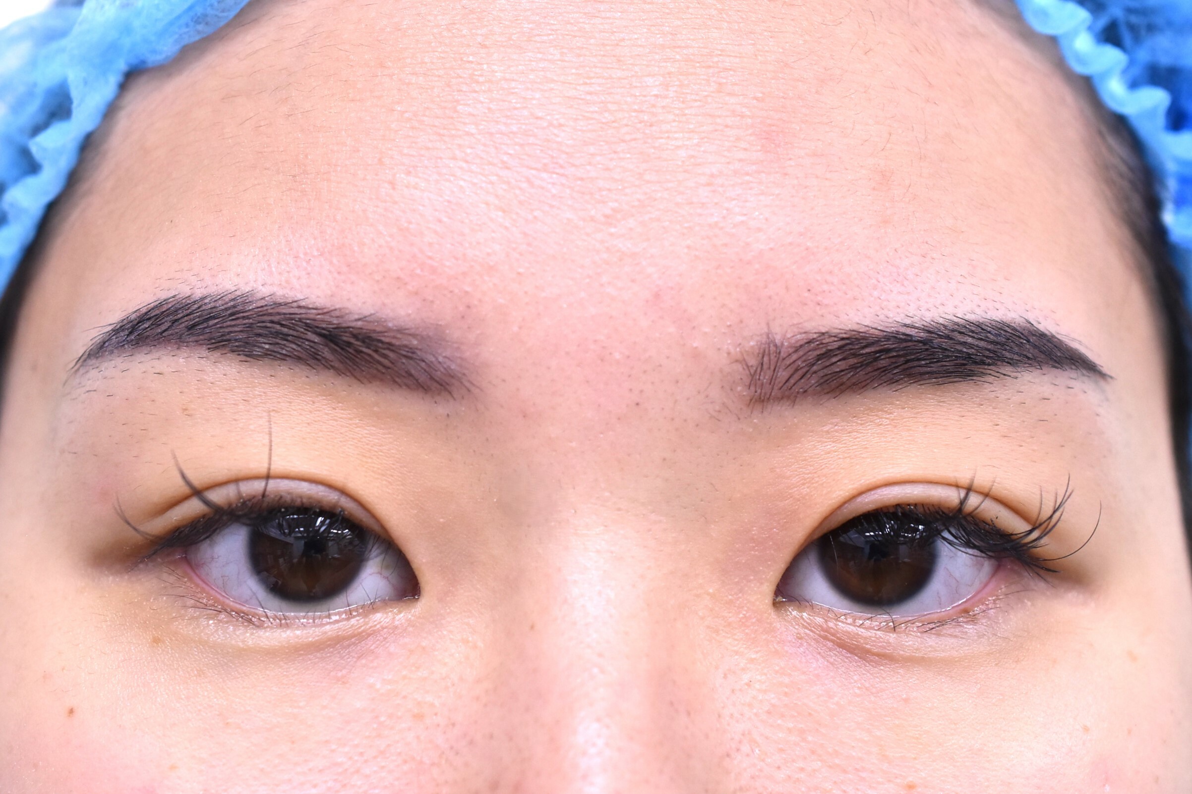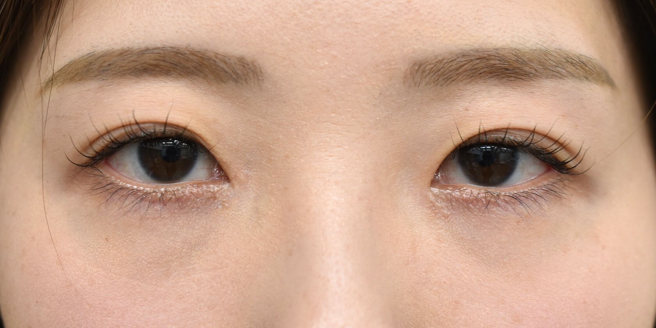 20代女性の埋没法+目頭切開症例になります。 テープで二重の癖をつくっていましたが、なかなか癖がつかないため、前記手術にて二重をつくっています。 二重幅は9mm、Z法2mm幅にてデザイン ミックス型になるようにデザインしています。