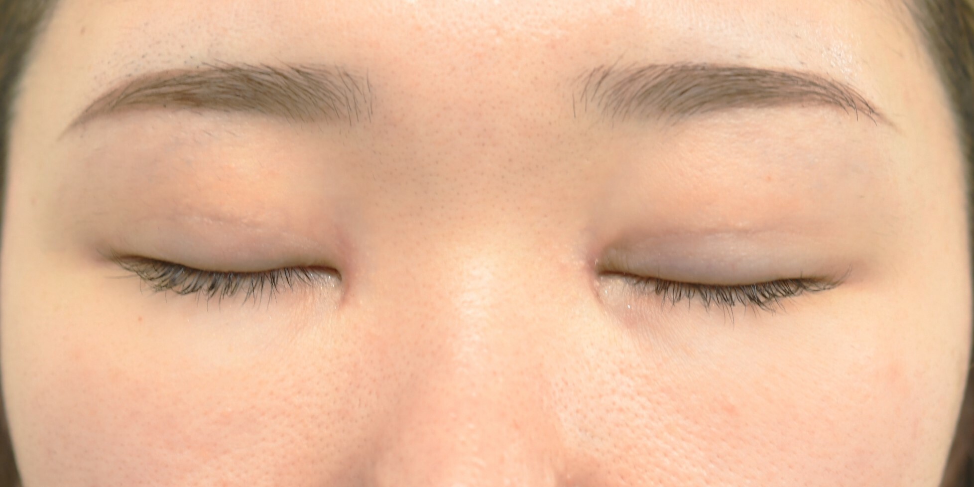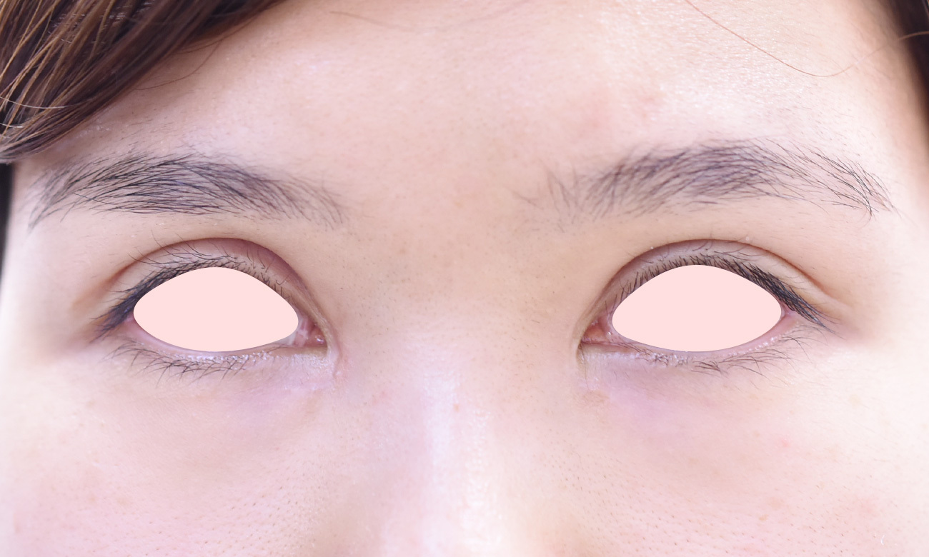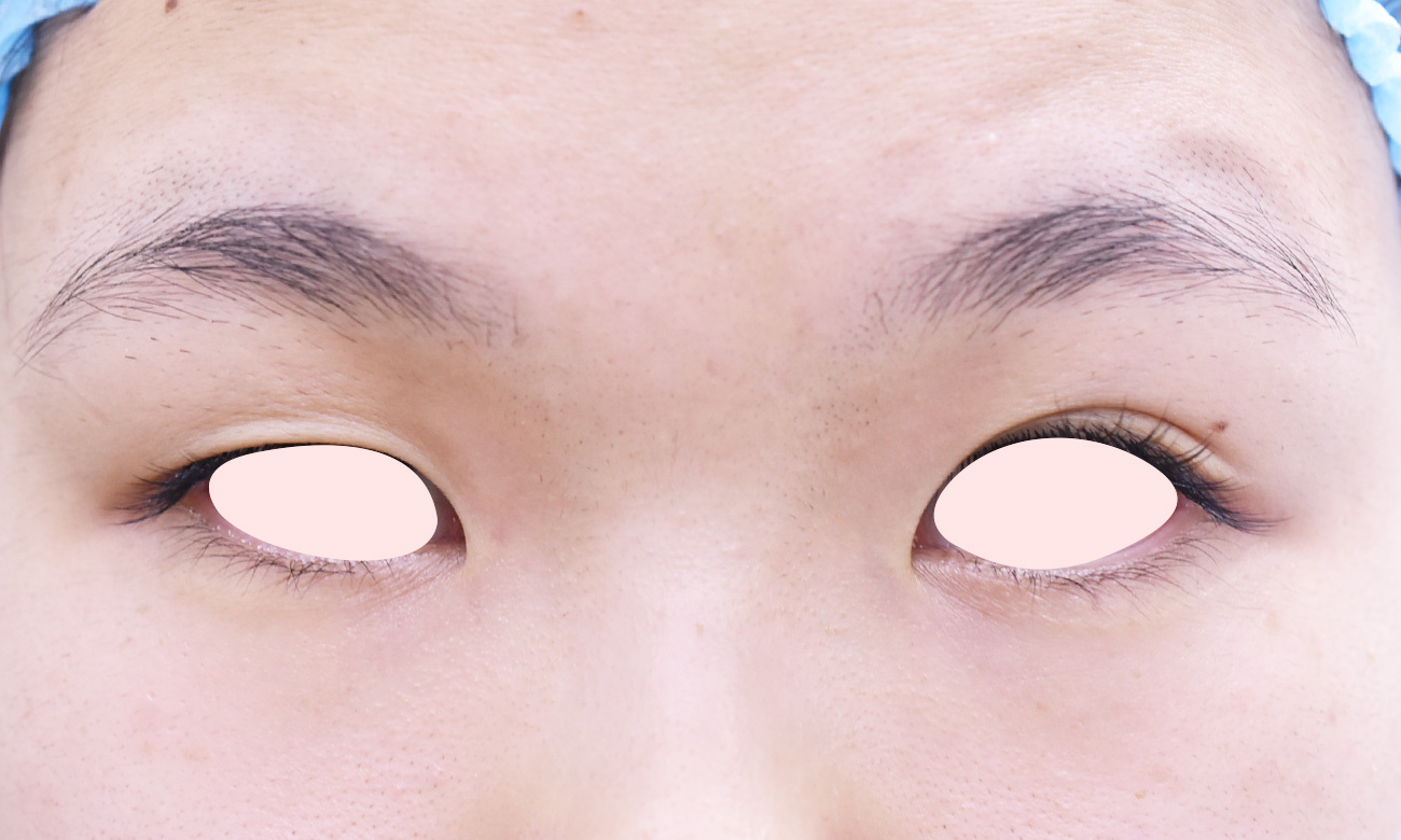 20代女性の埋没法+W法による目頭切開の症例です。二重幅を広げて平行型にしたいとの希望にて前記手術を行いました。