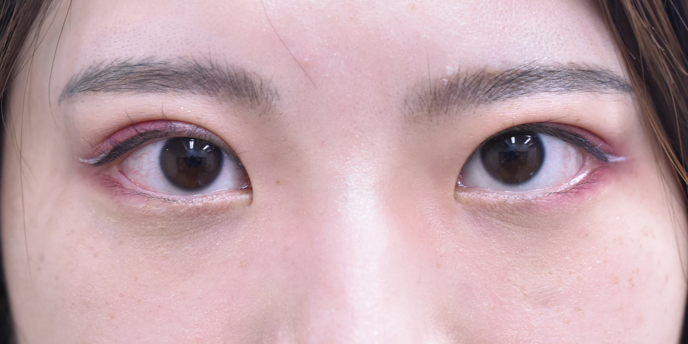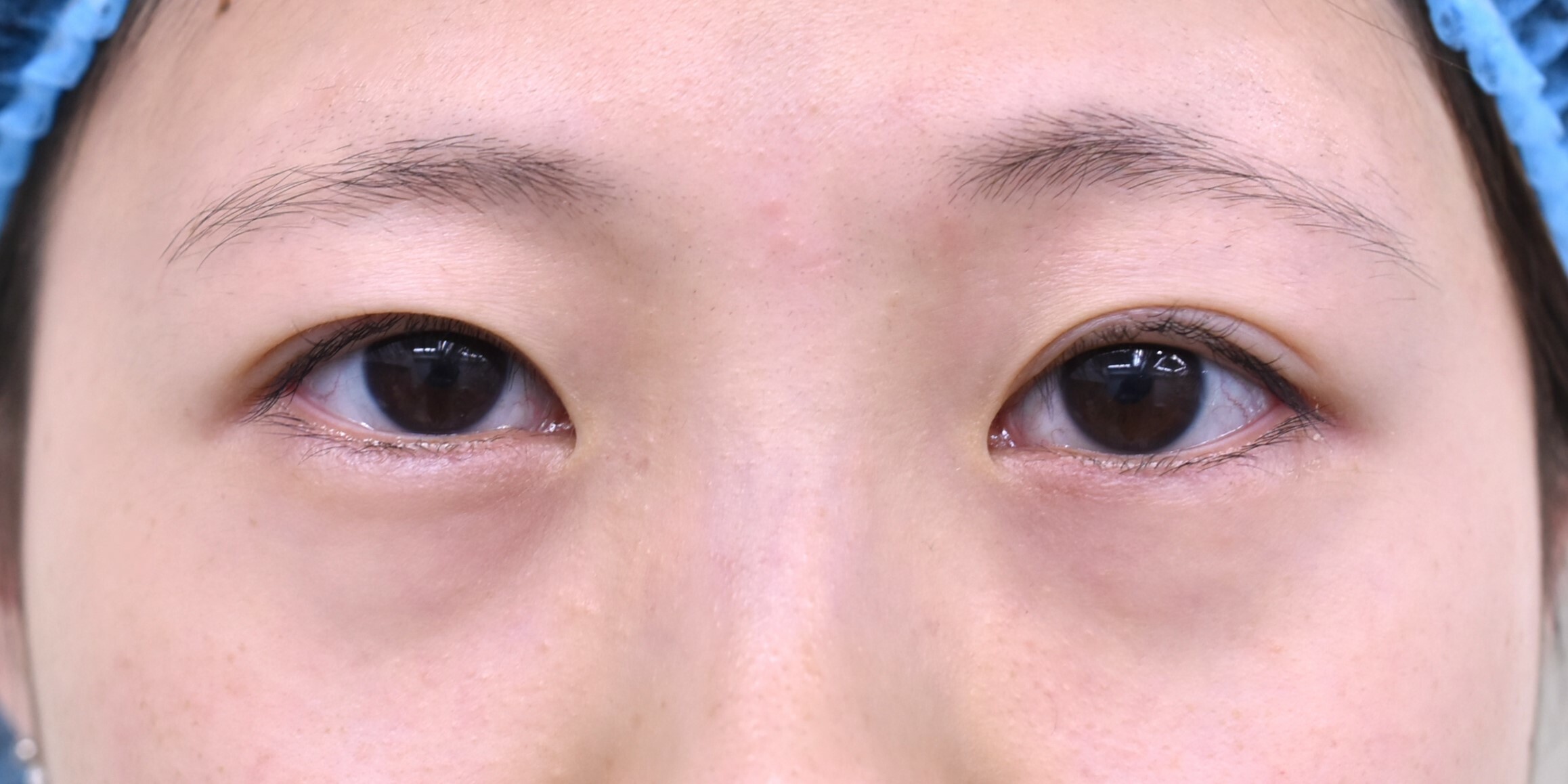 20代 女性の 小切開法+脱脂症例になります。埋没法を以前にされていましたが、緩んで幅が狭くなってきたため、切開での修正を行うことになりした。二重幅を今までよりも広い7.5mm幅として、末広型の二重をつくっています。併せて目尻側の脂肪取りを行っています。腫れぼったさが改善したのと、まつ毛が跳ね上がって、ぱっちりとしたおめともになりました。