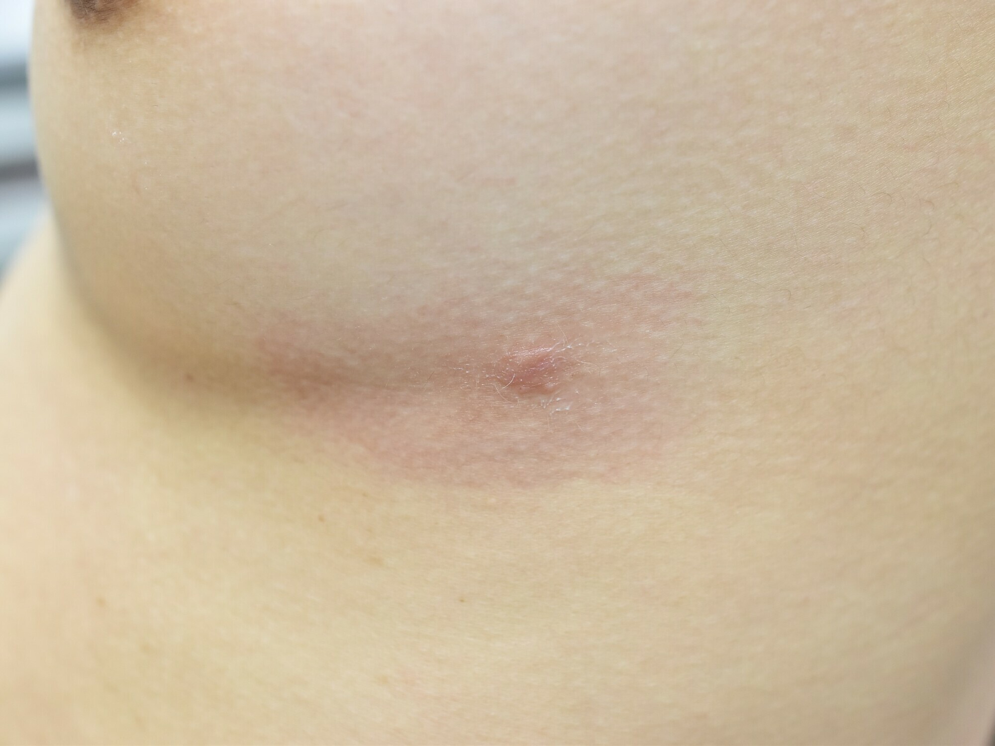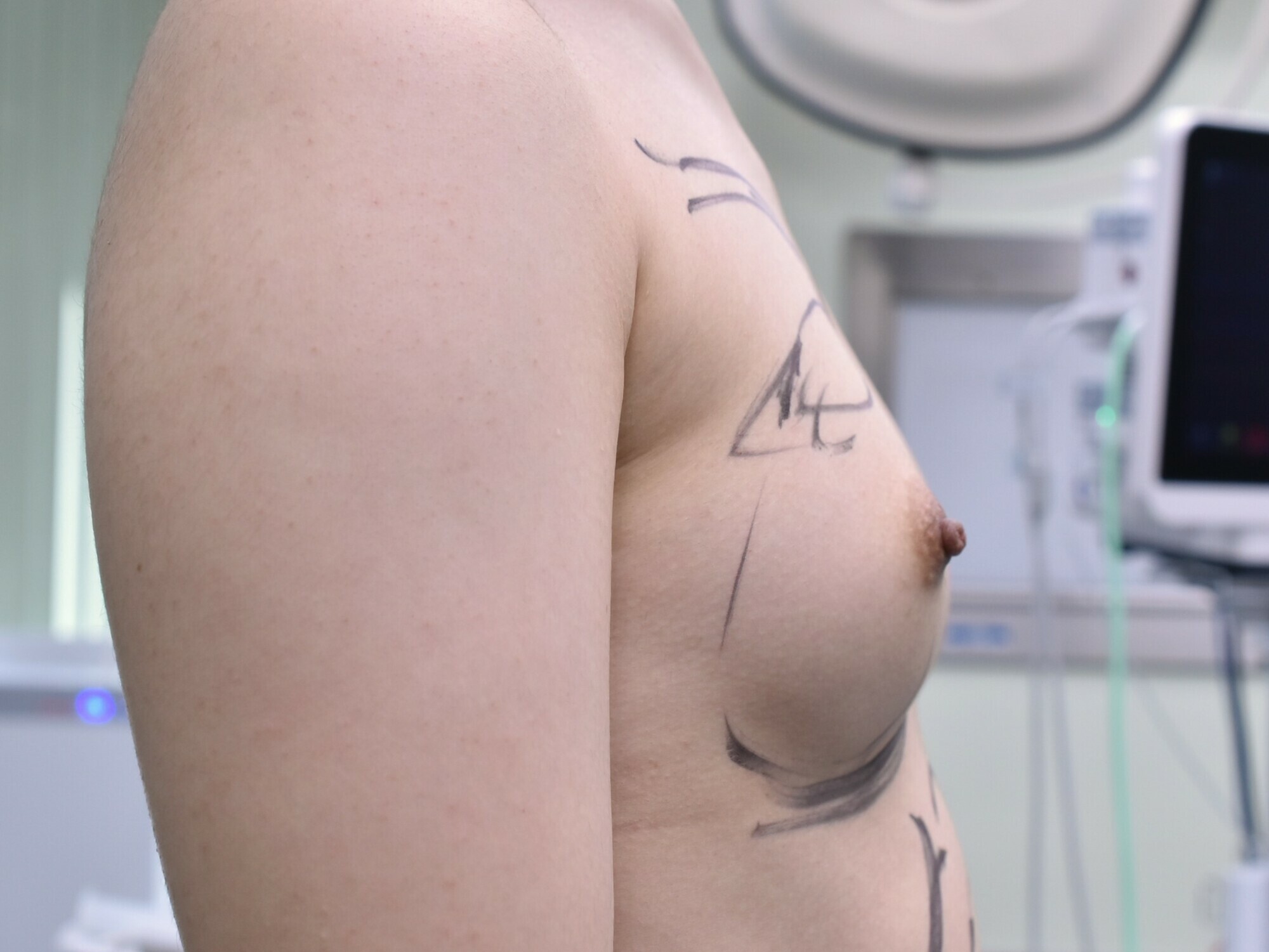20代女性の脂肪注入豊胸術術症例になります。上腕、腹部、大腿内側から脂肪吸引を行い、左右ともに200ccずつ注入しましした。
