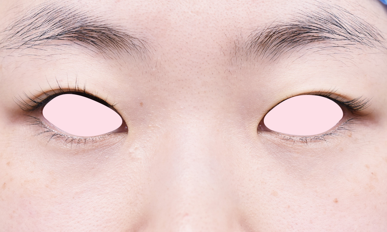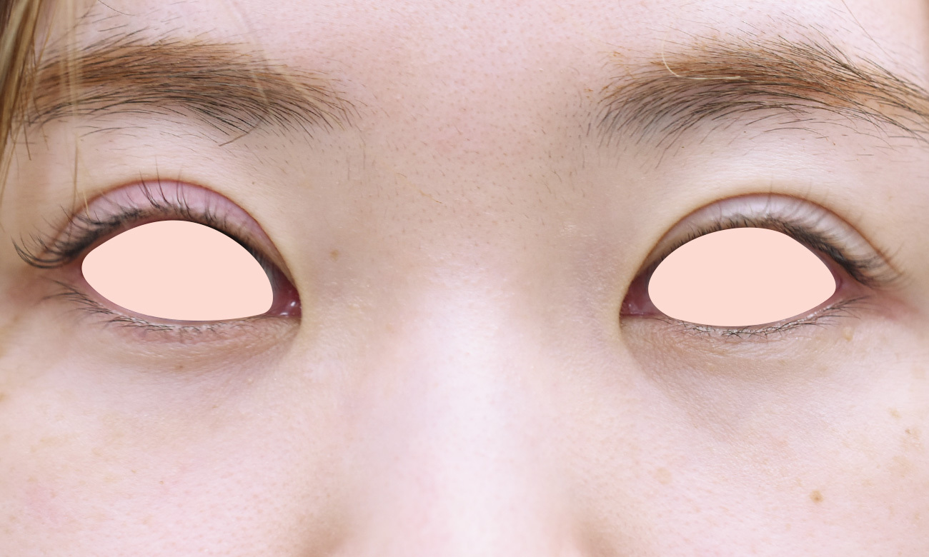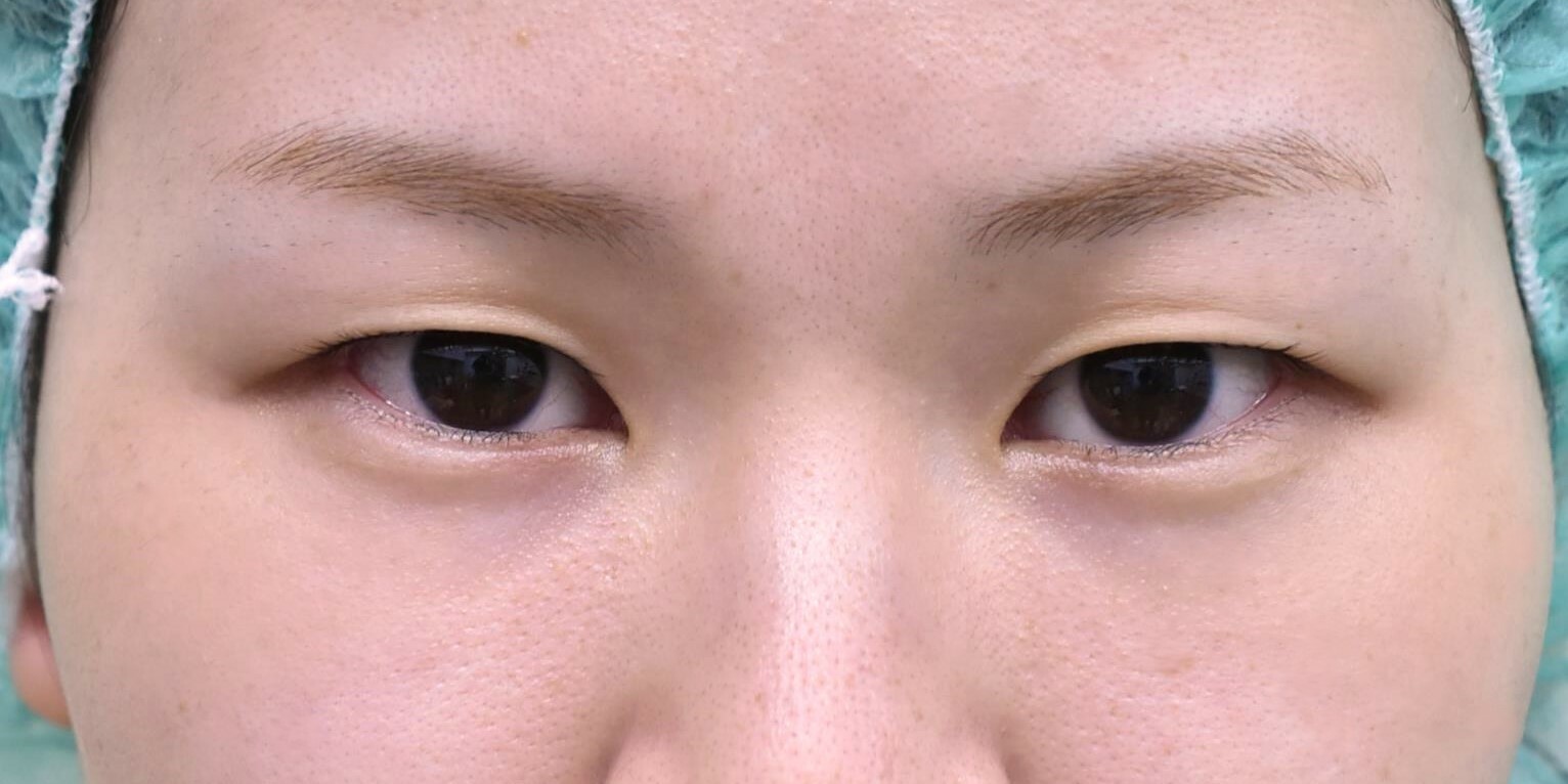 8mm幅の末広型でデザインし、脱脂、逆さまつ毛修正に合わせて、挙筋腱膜前転も行っています。