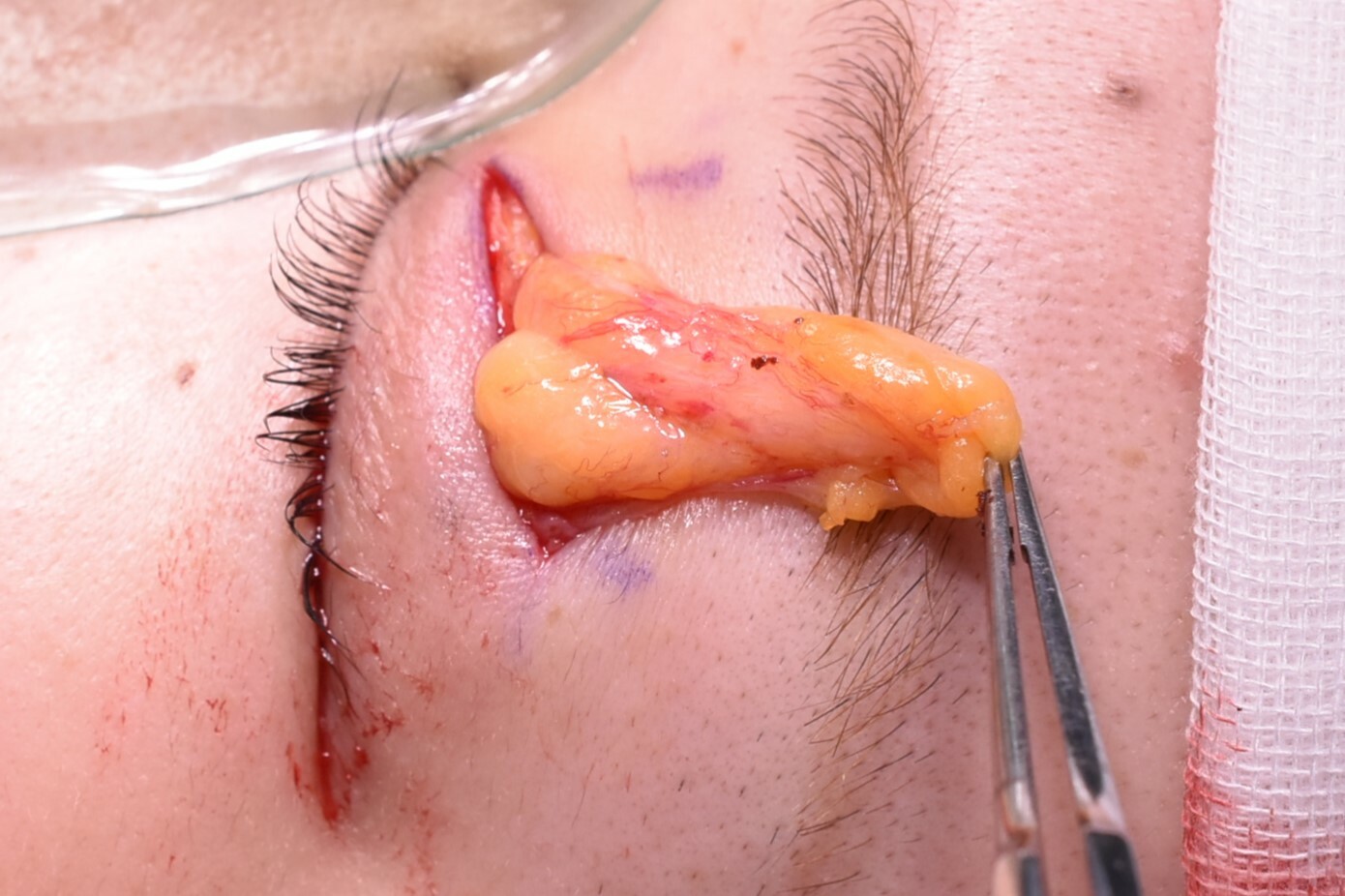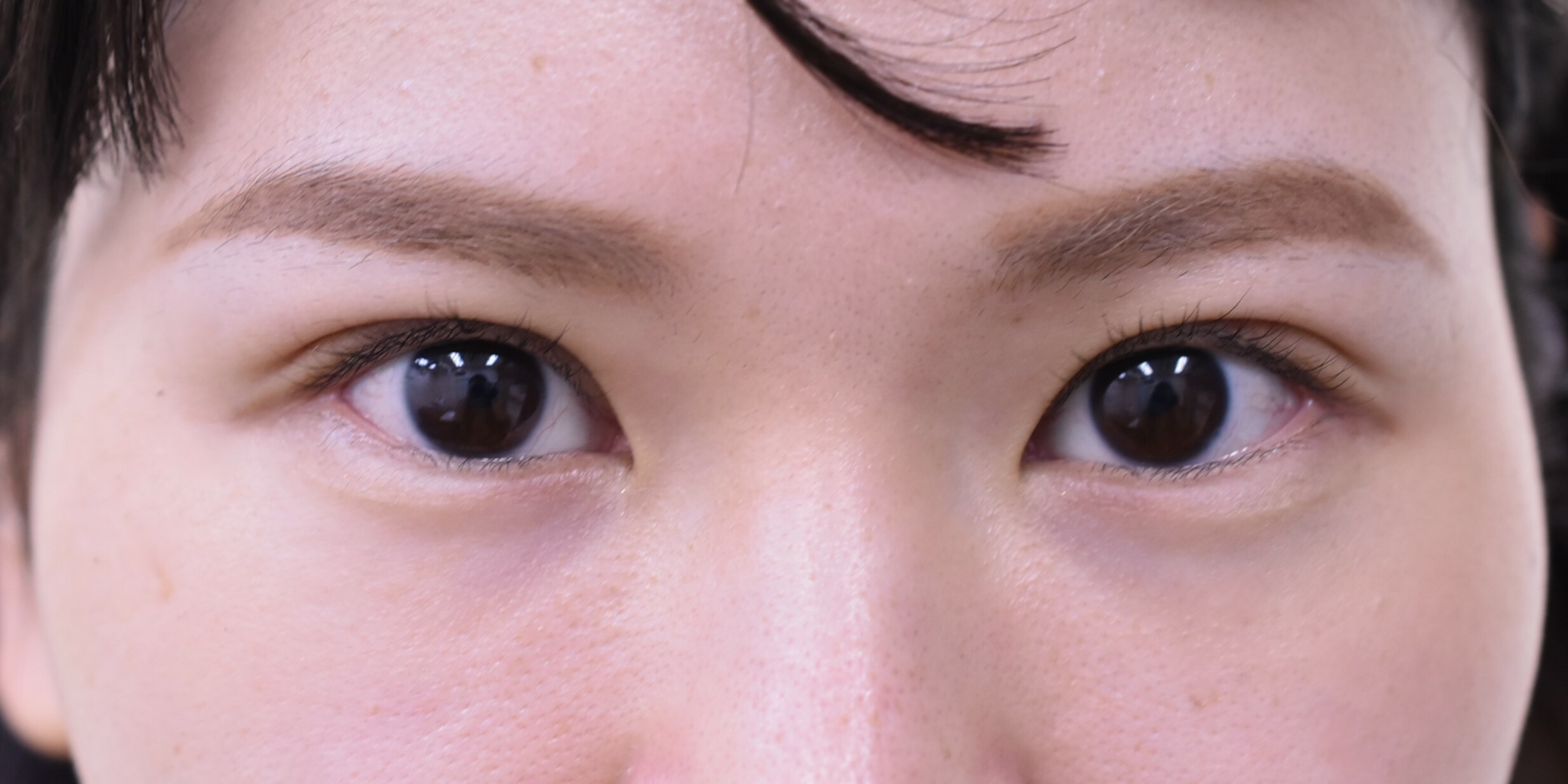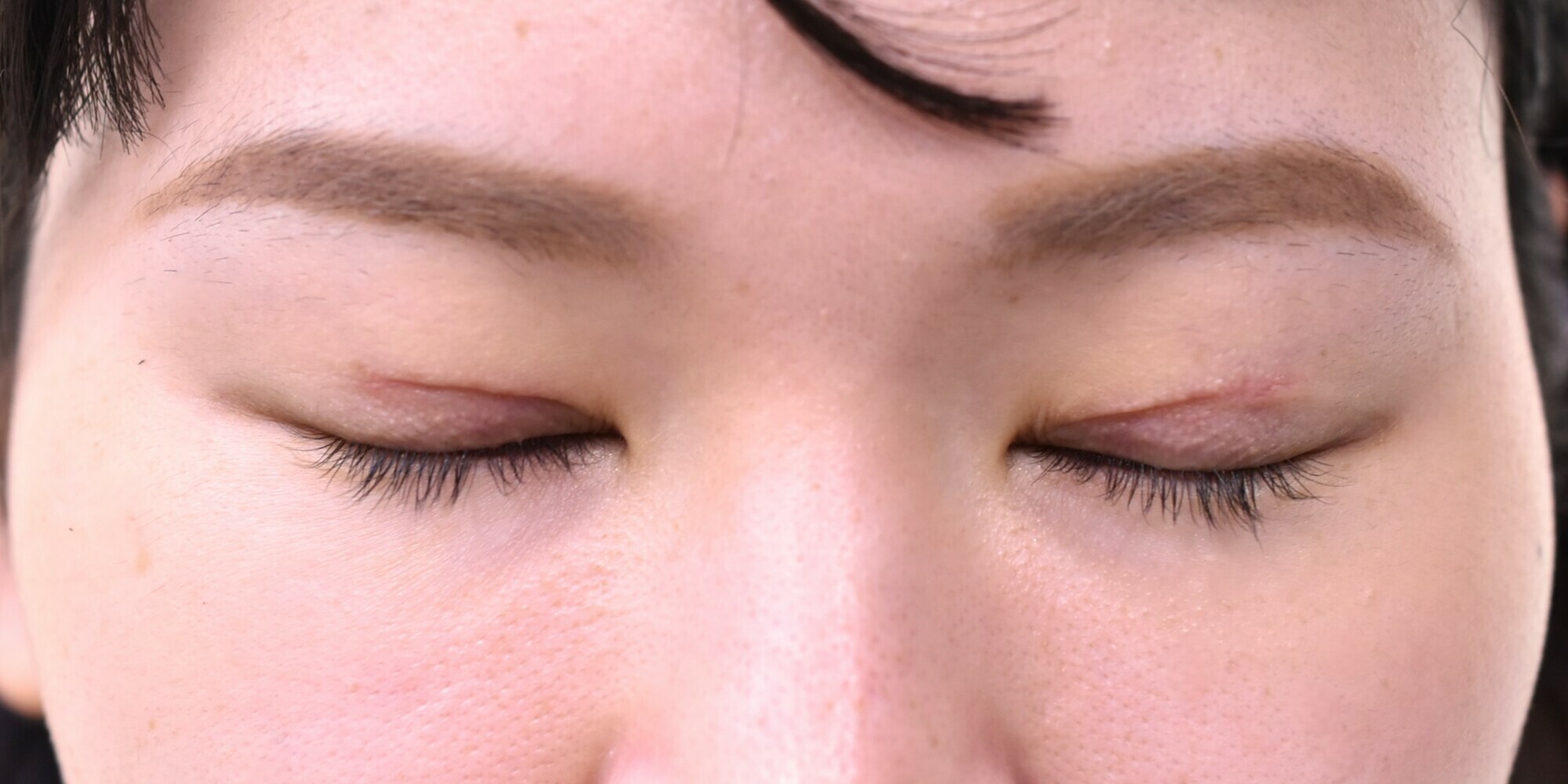 8mm幅の末広型でデザインし、脱脂、逆さまつ毛修正に合わせて、挙筋腱膜前転も行っています。