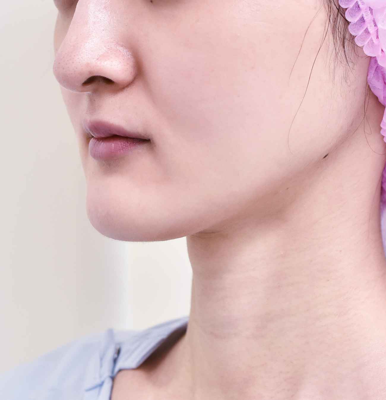20代女性下顎骨骨切り症例になります。男性ぽい顎を女性らしくしたいとの希望にて、下顎骨水平骨切りを行いました。顎先が太いと、短くとも男性ぽく見えるため、ややとがらせるような仕上がりになるよう注意を払いました。