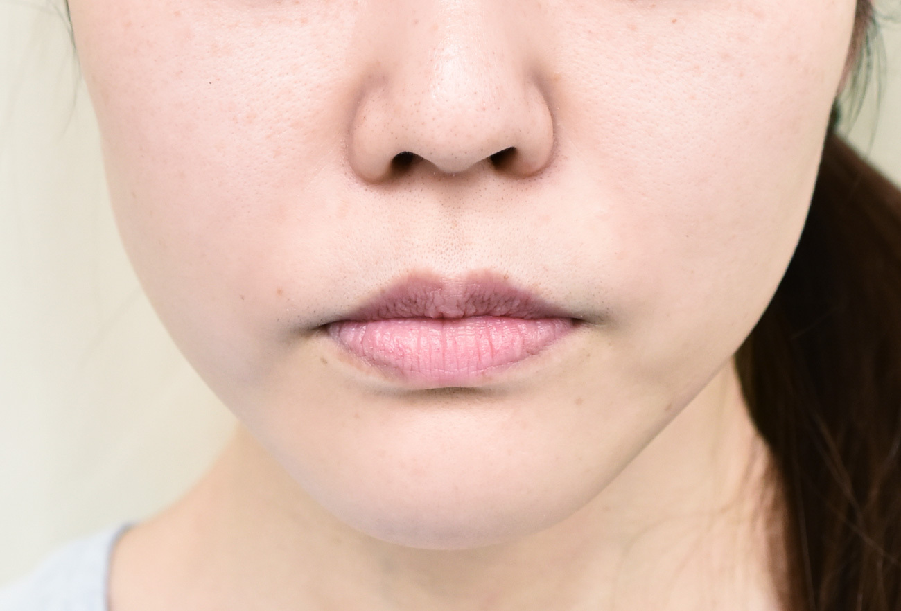 ブーメラン型に下顎骨の水平骨切りを行い、最大幅7mmで切除しました。術後の弛みは、脂肪溶解剤のアルフォコリン注射を行うことで、あまり気にならない程度にまで改善しています。