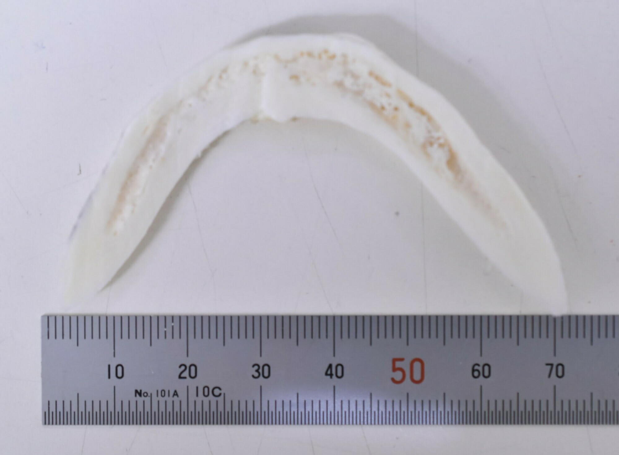 20代女性の顎の骨切り症例になります。はるばる関東のほうから来ていただきました。顎を短くしつつとがらせたい、左右差をなくしたいとの希望にて顎骨切り術を行いました。左右差があったため、右7mm 左6.5mm幅にて骨切りを行っています。
