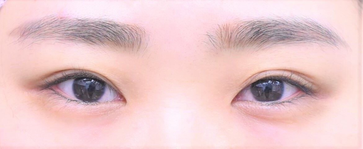 20代女性の全切開法症例になります。すでに埋没法を数回されていたのですが、二重幅を広げてすっきりさせたいとのことで全切開法にで行っています。二重幅は9mm 過去のアイプチかぶれで逆さまつ毛気味になっていたため、たるみもさわせて切除しています。