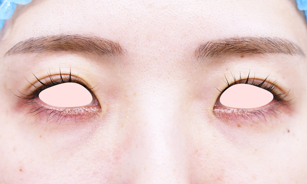 30代女性の埋没法+目頭切開症例になります。二重幅をひろげて切れ長な目に、平行型に近づけたいとの希望にて前記手術を行いました。二重幅は8mm、目頭切開はZ法を行っています。目頭切開の傷跡が軽度肥厚性瘢痕を生じたため、術後にケナコルト注射を2回行い、3ヶ月検診頃にはかなり改善しています。