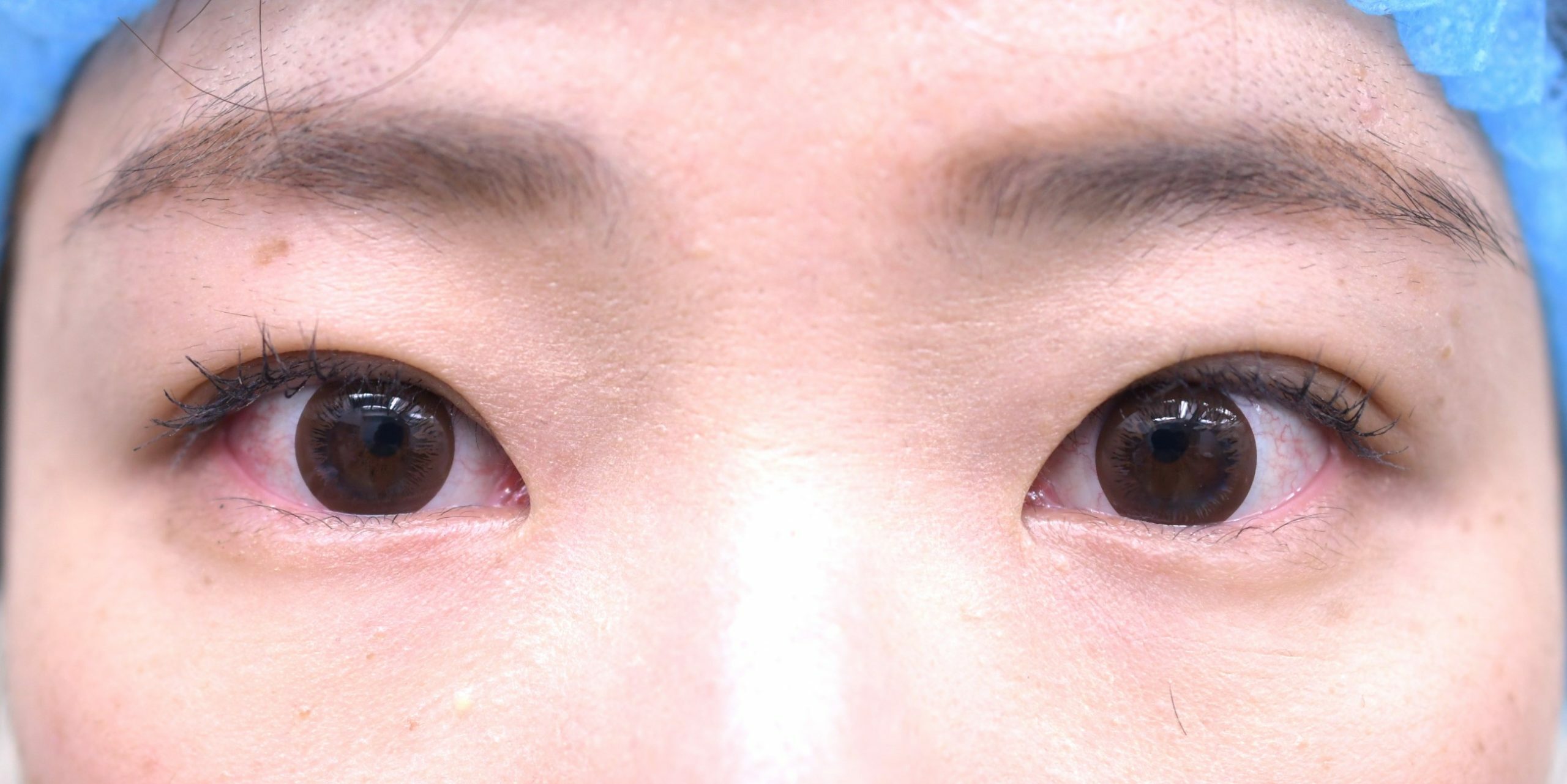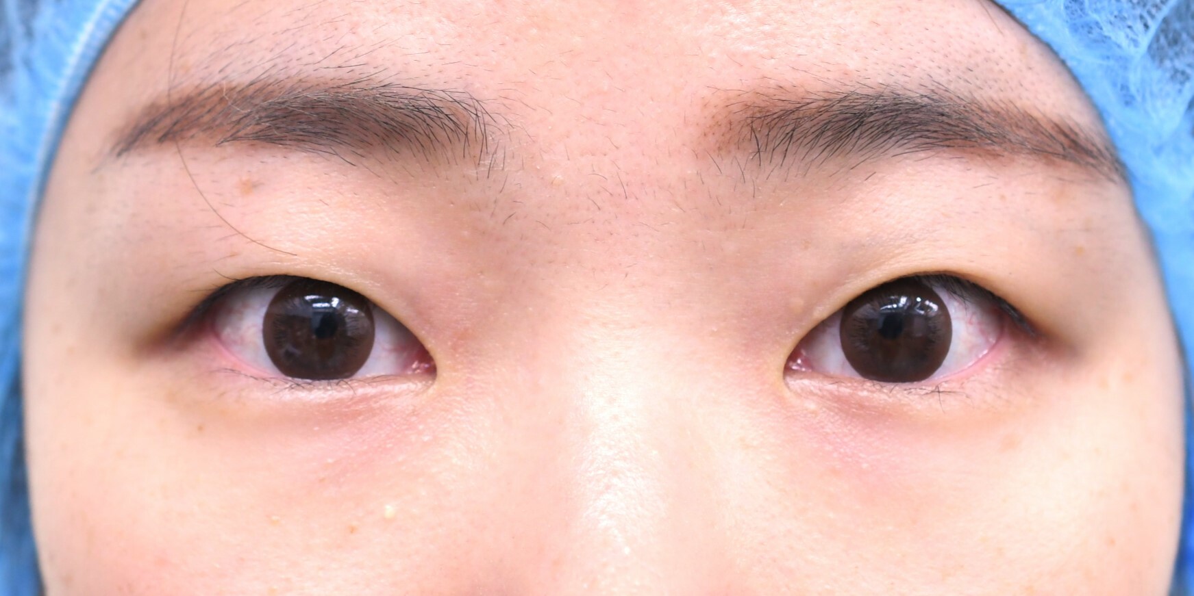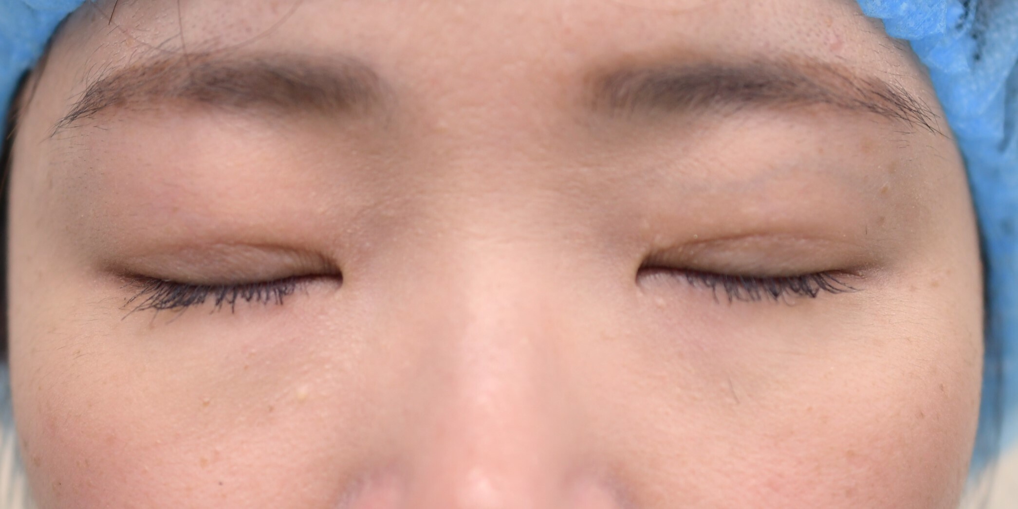 8mm幅にて行いました。症例写真は1M後になります。まつ毛腫れ際がみえるようになったため、アーモンドアイになっています。