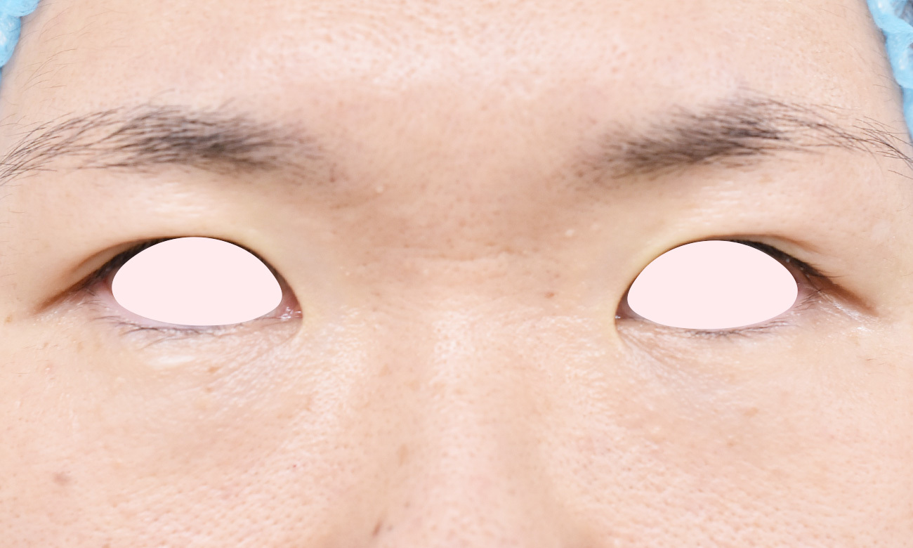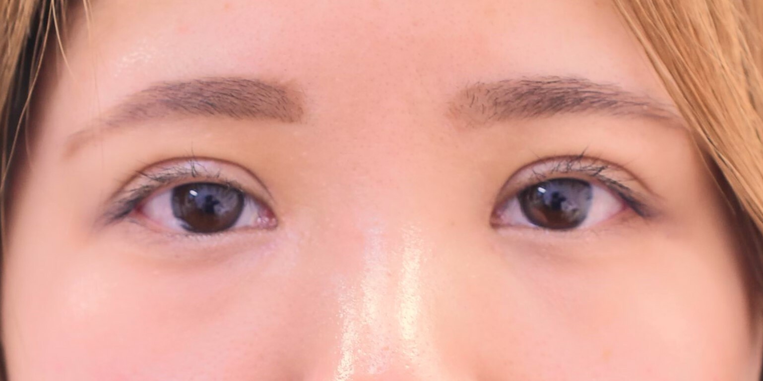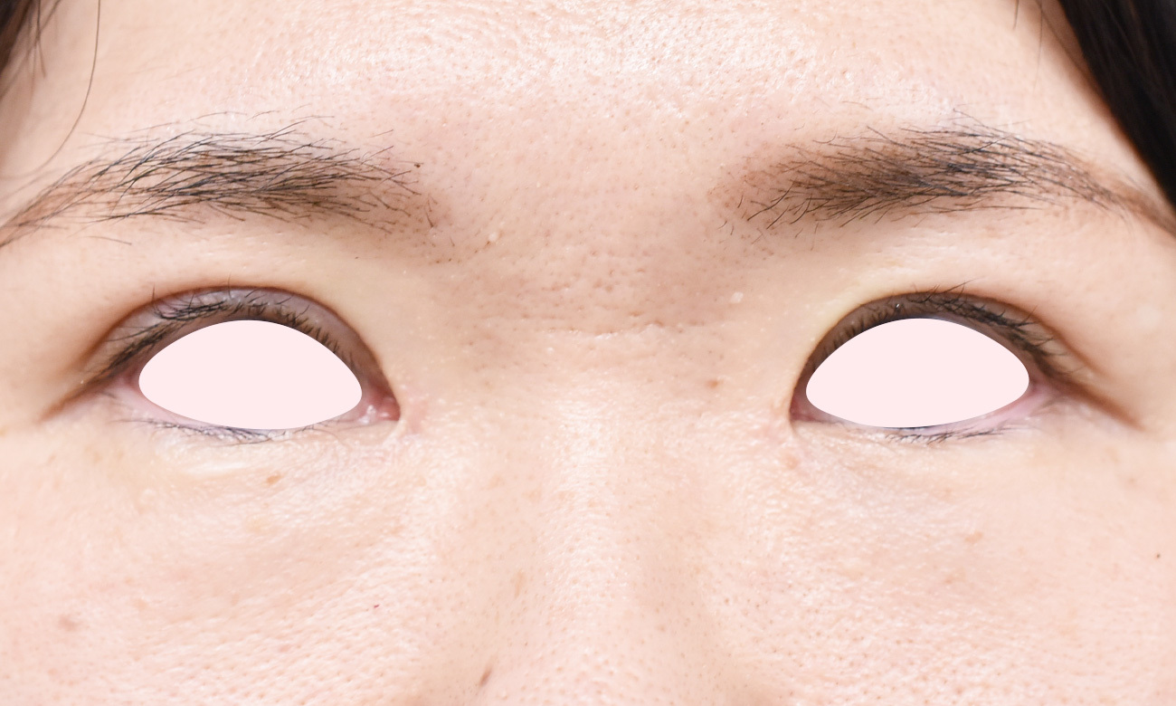 30代女性の全切開法(挙筋前転)+目頭切開 症例になります。二重をしっかり広げて平行型に近づけたいとの希望にて前記手術を行いました。二重幅は8.5mmで行い、併せてたるみ切除も行っています。挙筋のゆるみも認めたため、脱脂にあわせて挙筋前転も併せて行いました。目頭切開はZ法にて行っています。まつ毛の内反と、眉毛を上げる癖が消えたため、ぱっちりとしたお目元になりました。
