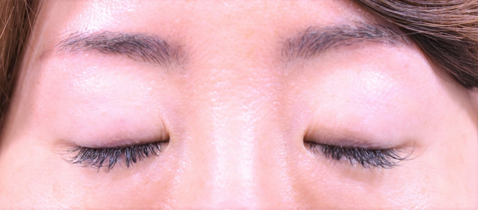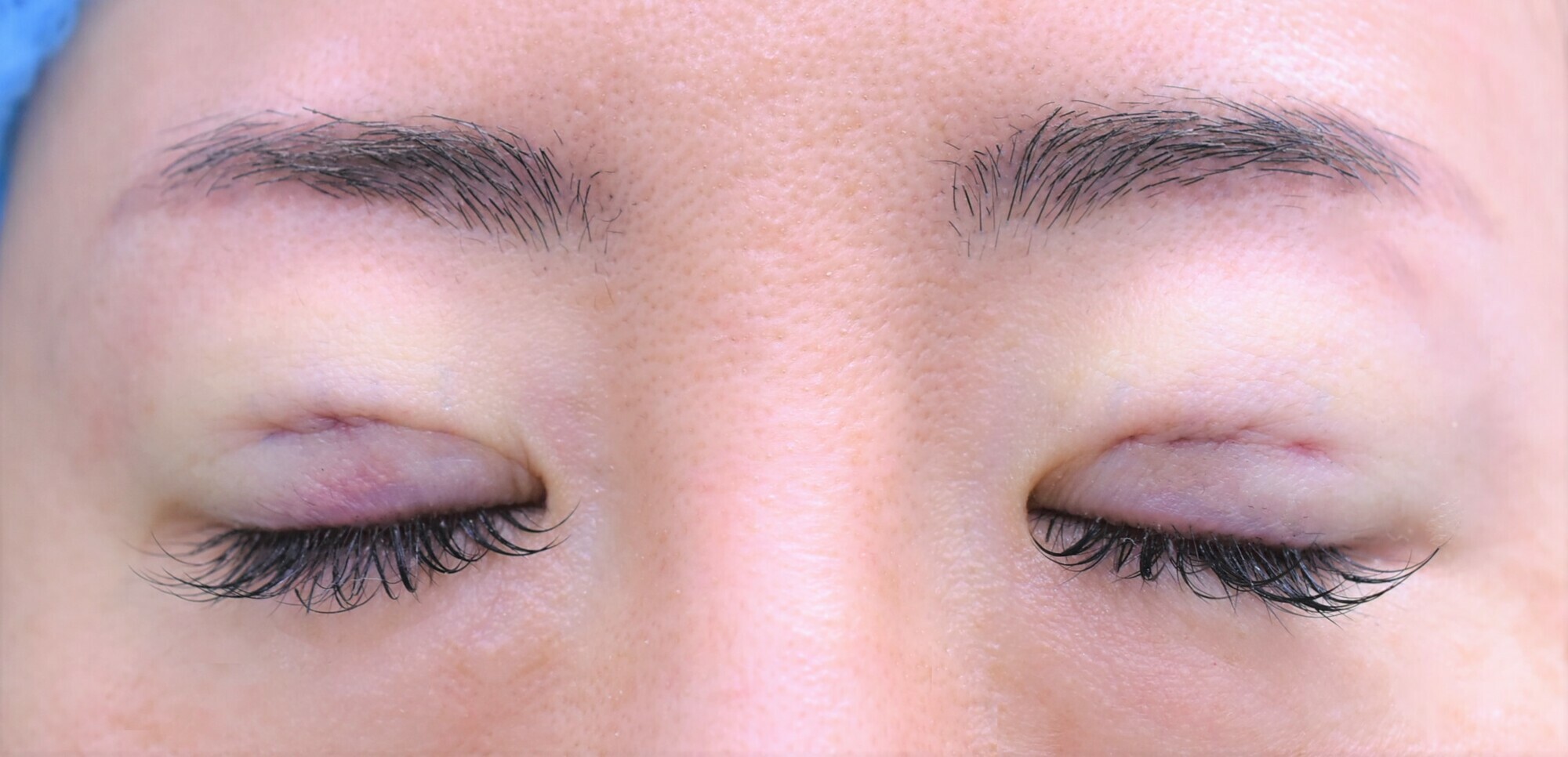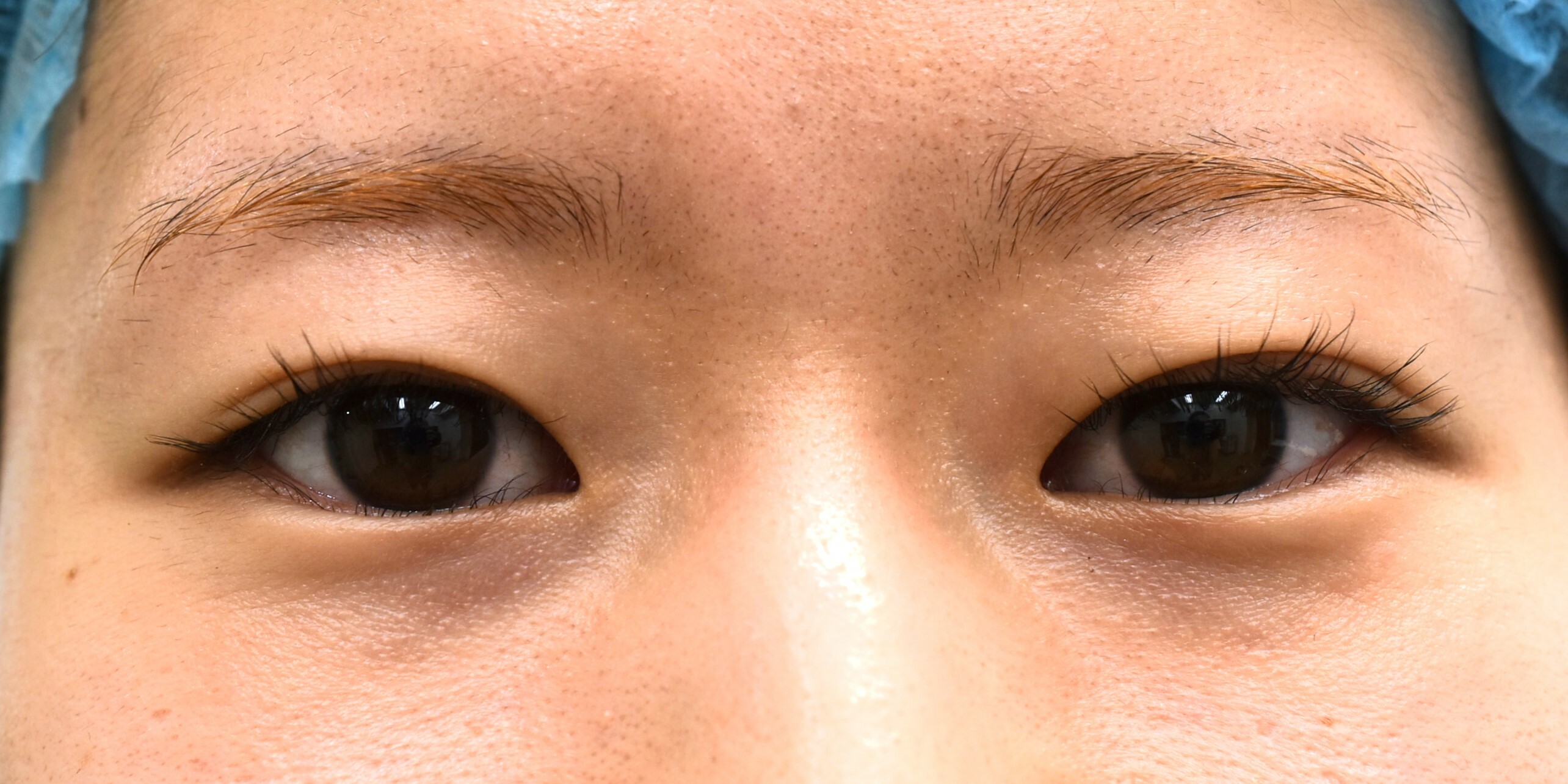 9mm幅で末広型にてデザインしています。まつ毛が跳ね上がるような幅を選んだため、手術直後の写真ではありますが、自然なぱっちりとした二重ができました