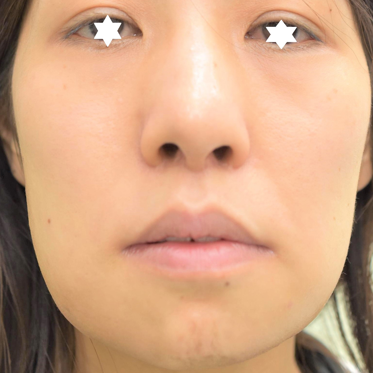 30代女性の下顎骨水平骨切り術になります。長年のコンプレックスの顎の長さを治療する目的で、下顎骨水平骨切りを行いました。