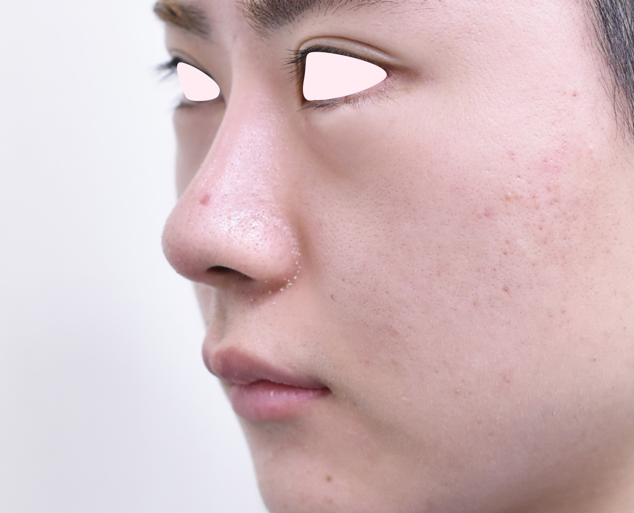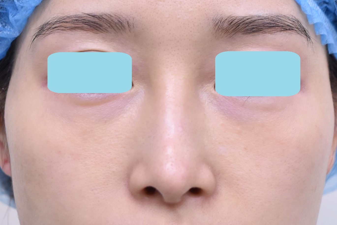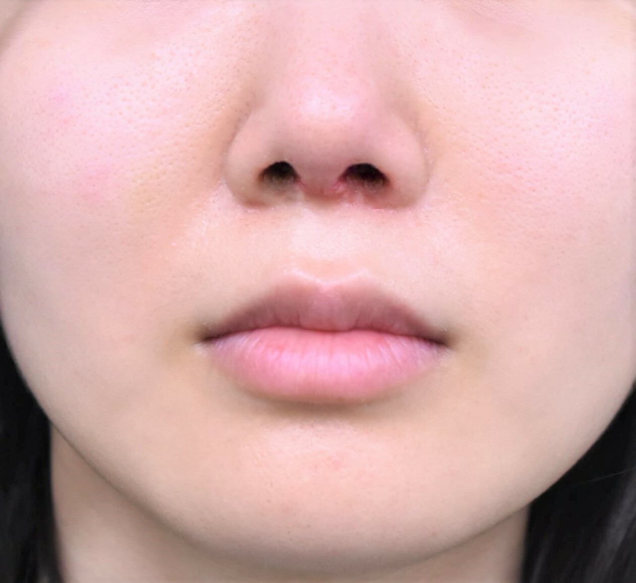 30代女性の、鼻プロテーゼ抜去症例になります。数年前に鼻プロテーゼを入れましたが、鼻の形の好みが変わったとのことで抜去行いました。術後、プロテーゼが入っていた部位の陥凹を気にされる方もおられますが、吸収されやすい脂肪はもともと少なく、鼻骨も吸収されることはほとんどありません。