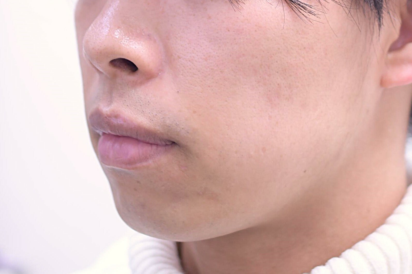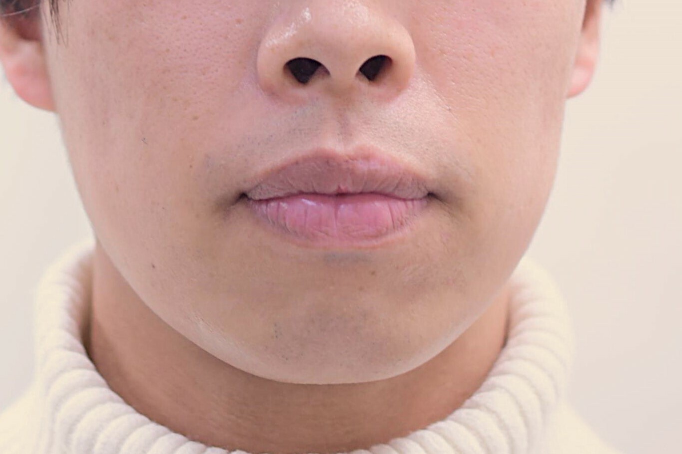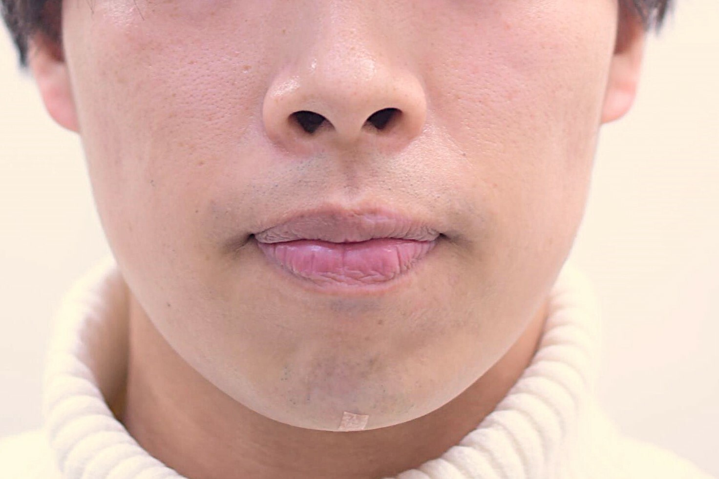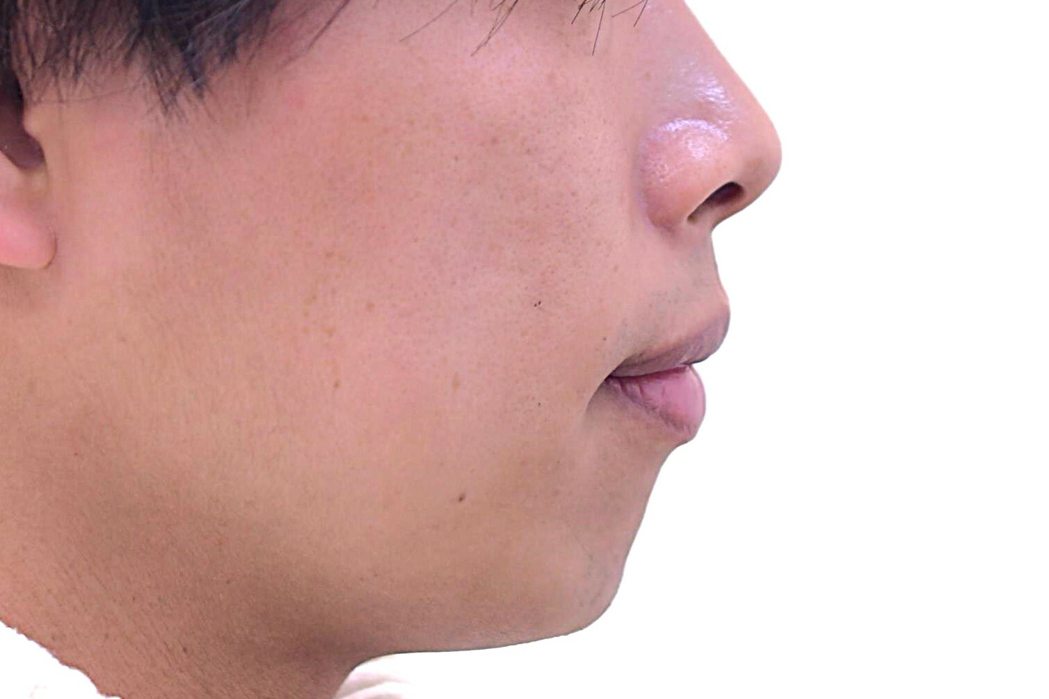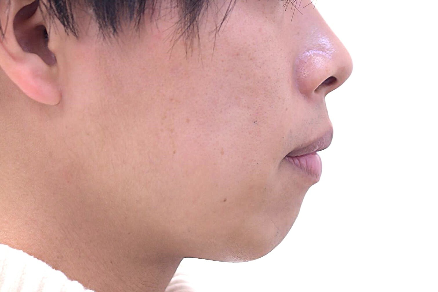 30代 男性の顎ヒアルロン酸症例になります。顎先を出すためにヒアルロン酸を顎先に注入しました。症例写真は注入前、注入後1か月の写真です。
