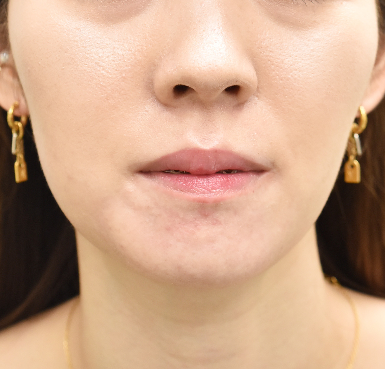 下顎骨を改めてブーメラン型にカットすることで、顎先をとがらせ、小顔になっています。顎先は控えめに、側面はで来るだけ大きめに切除しています。