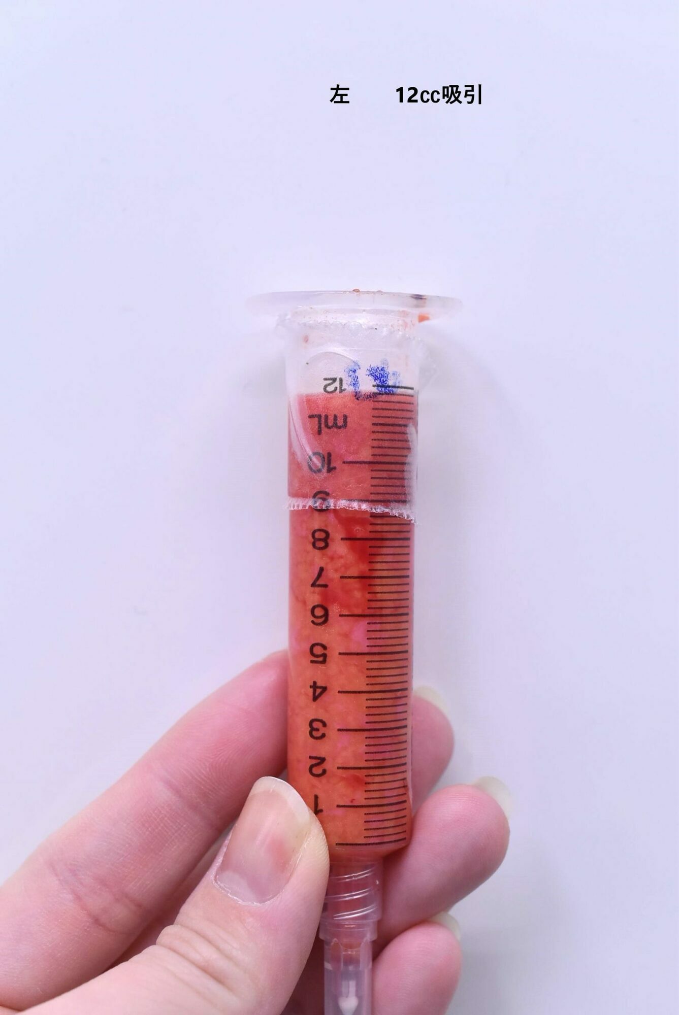 局所麻酔下、極細のカニューラを使って吸引を行い、左右ともに12ccずつ吸引できています。術後写真は、手術3M後の写真になります。