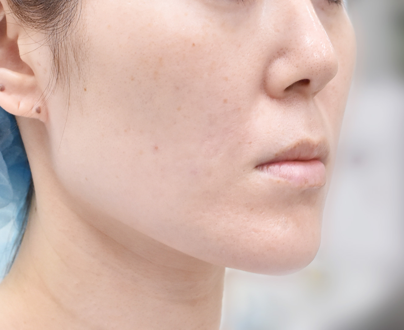 3ヶ月後の写真では、下顔面のボリュームダウン、小顔化の効果がでています。