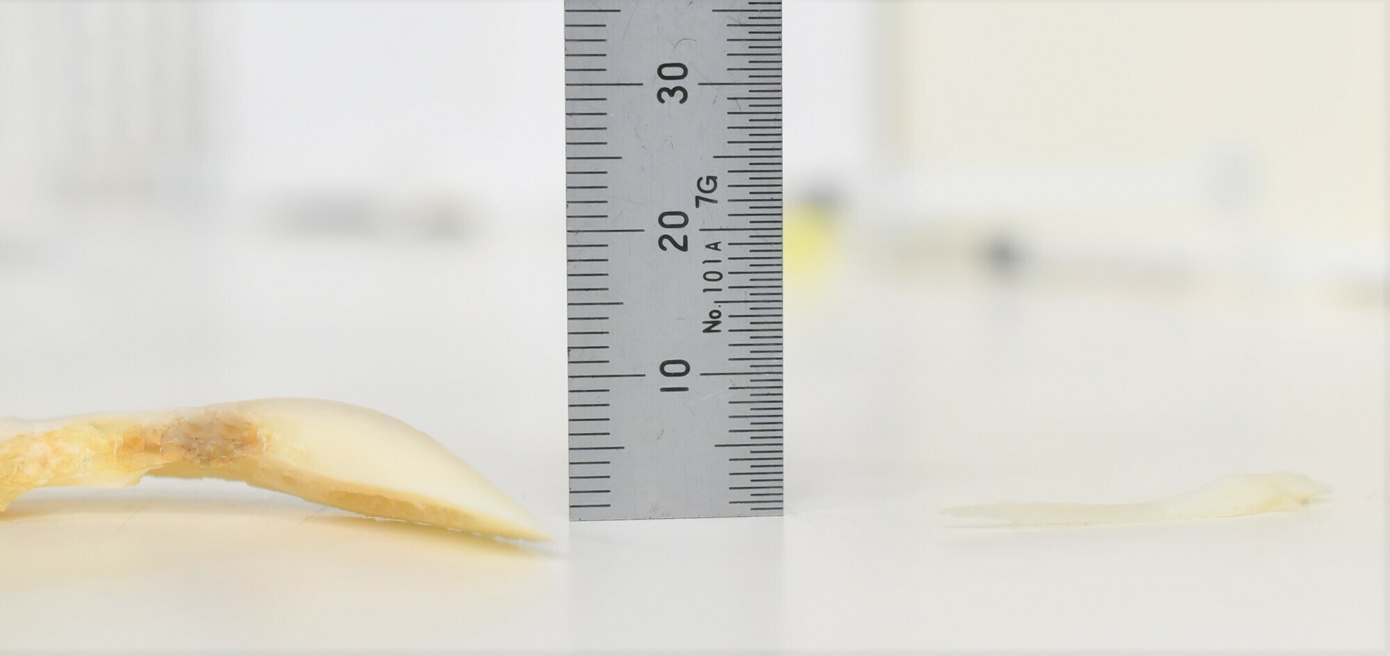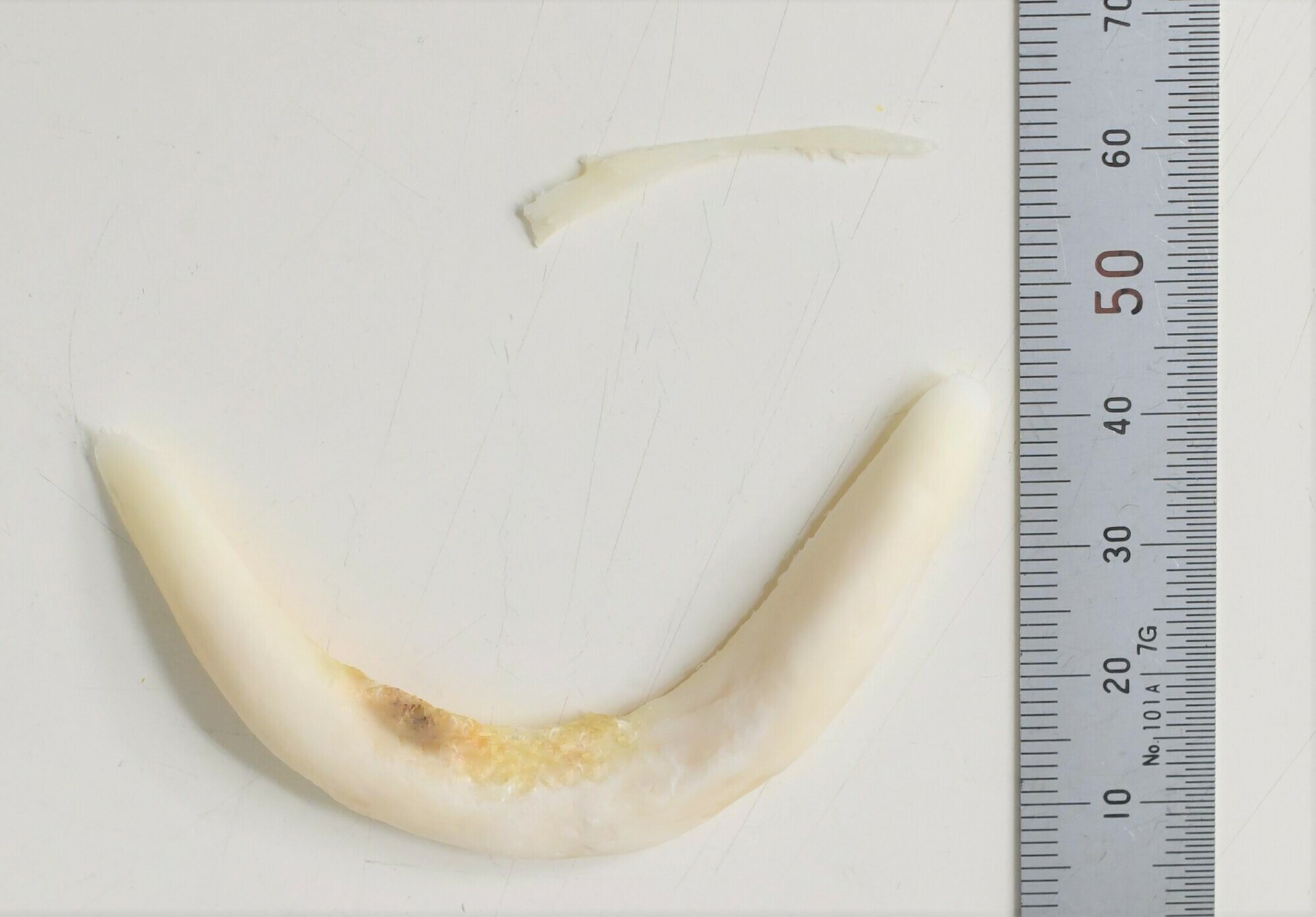 レントゲン写真で事前にデザインを行い左右ともに最大8mm、オトガイ先端で5mm幅で切除行っています。