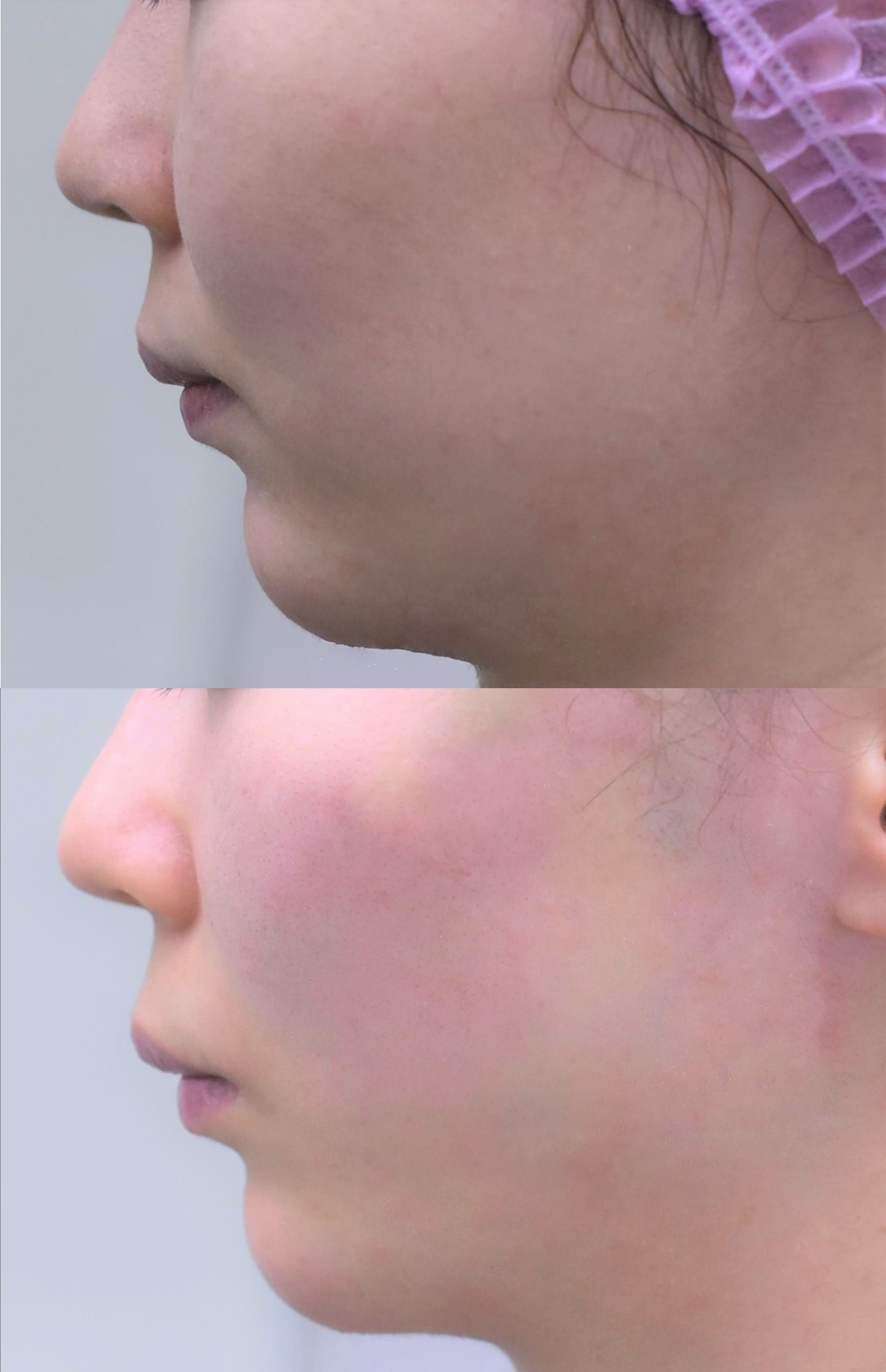 30代女性のバイニードル4本を使ったスレッドリフト症例になります。 マリオネットラインとフェイスラインの弛みの改善と、小顔目的に手術を行いました。 笑気麻酔で痛みを和らげ、頭髪内から頬に糸を通します。痛みも少なく、腫れが引けば効果の実感できる優れた方法です。
