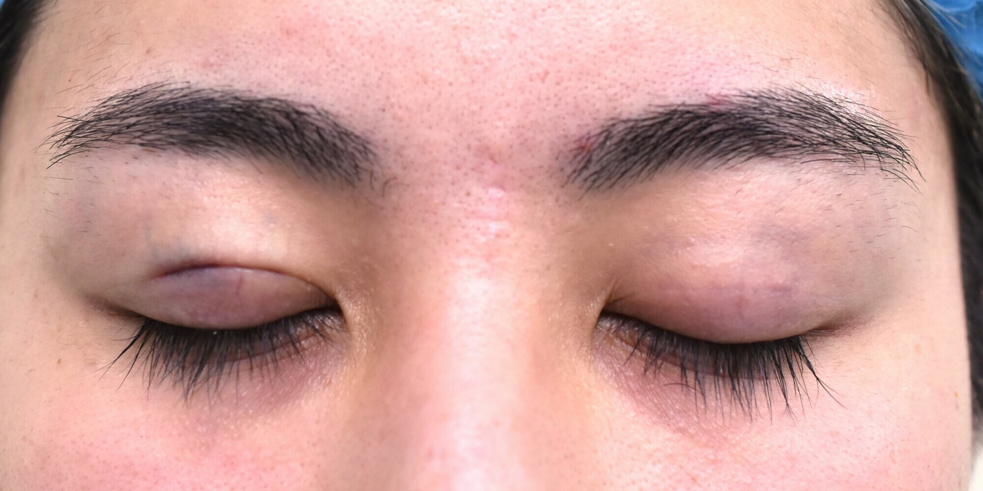 たるみが残る・目頭部分の突っ張り・左右差・眉毛の位置の左右差・瞼が完全に閉じない・くぼみ具合の変化・毛嚢炎・血液貯留・感染・白目や角膜の損傷・シワの増加・腫れ・浮腫み・結膜浮腫・内出血等