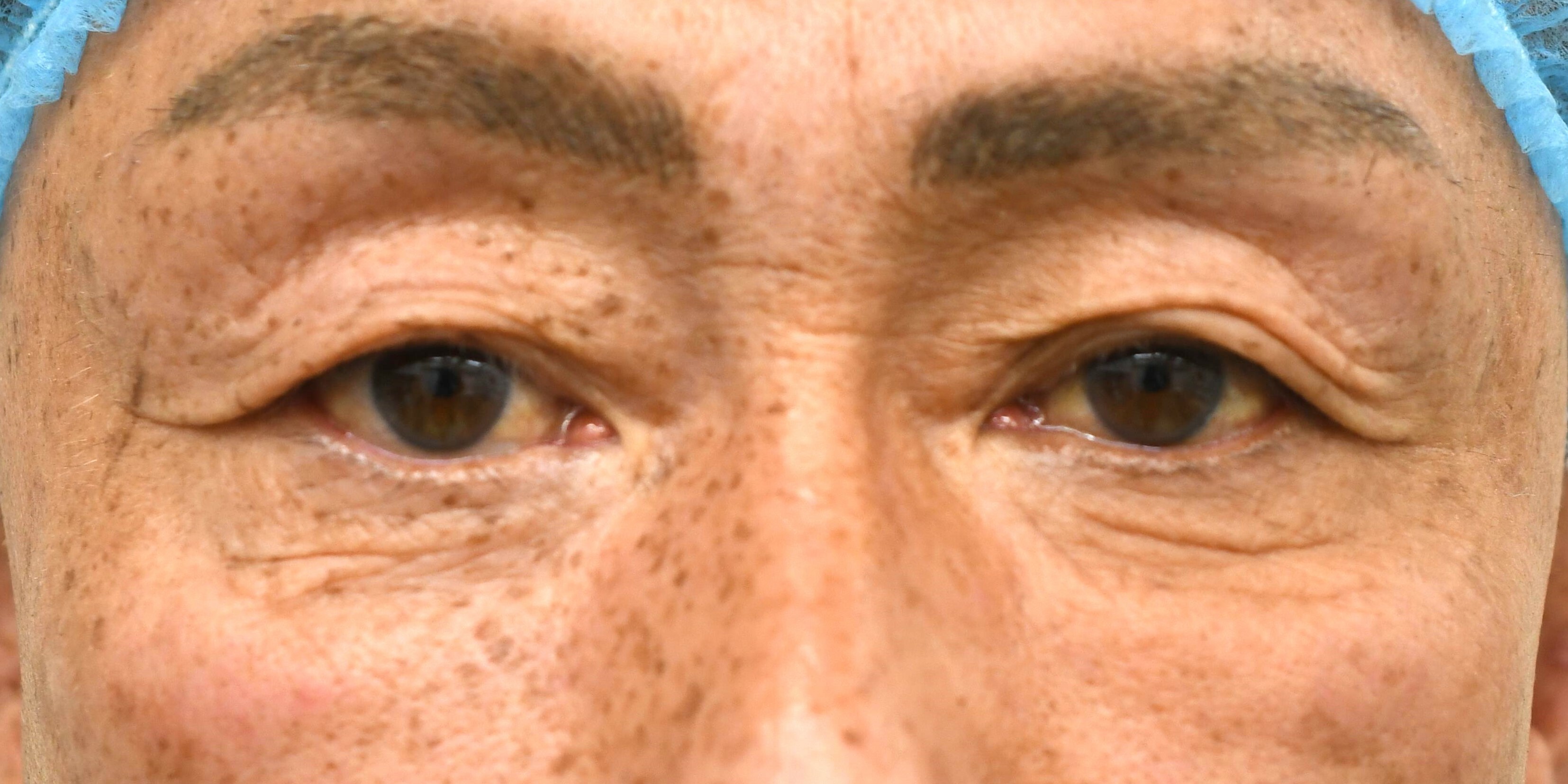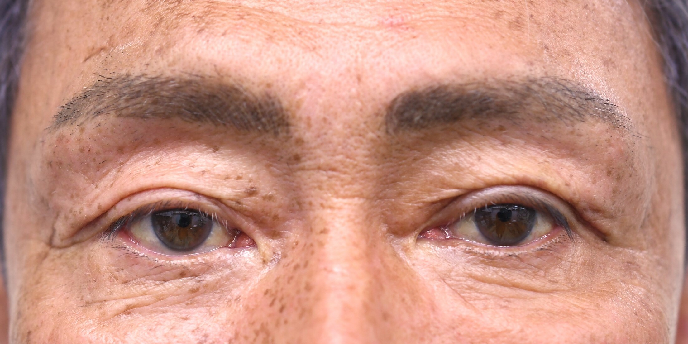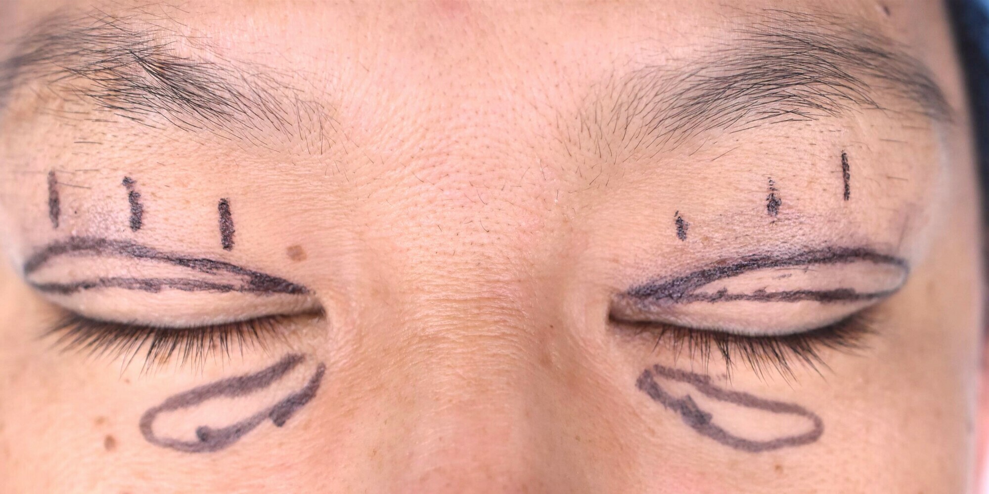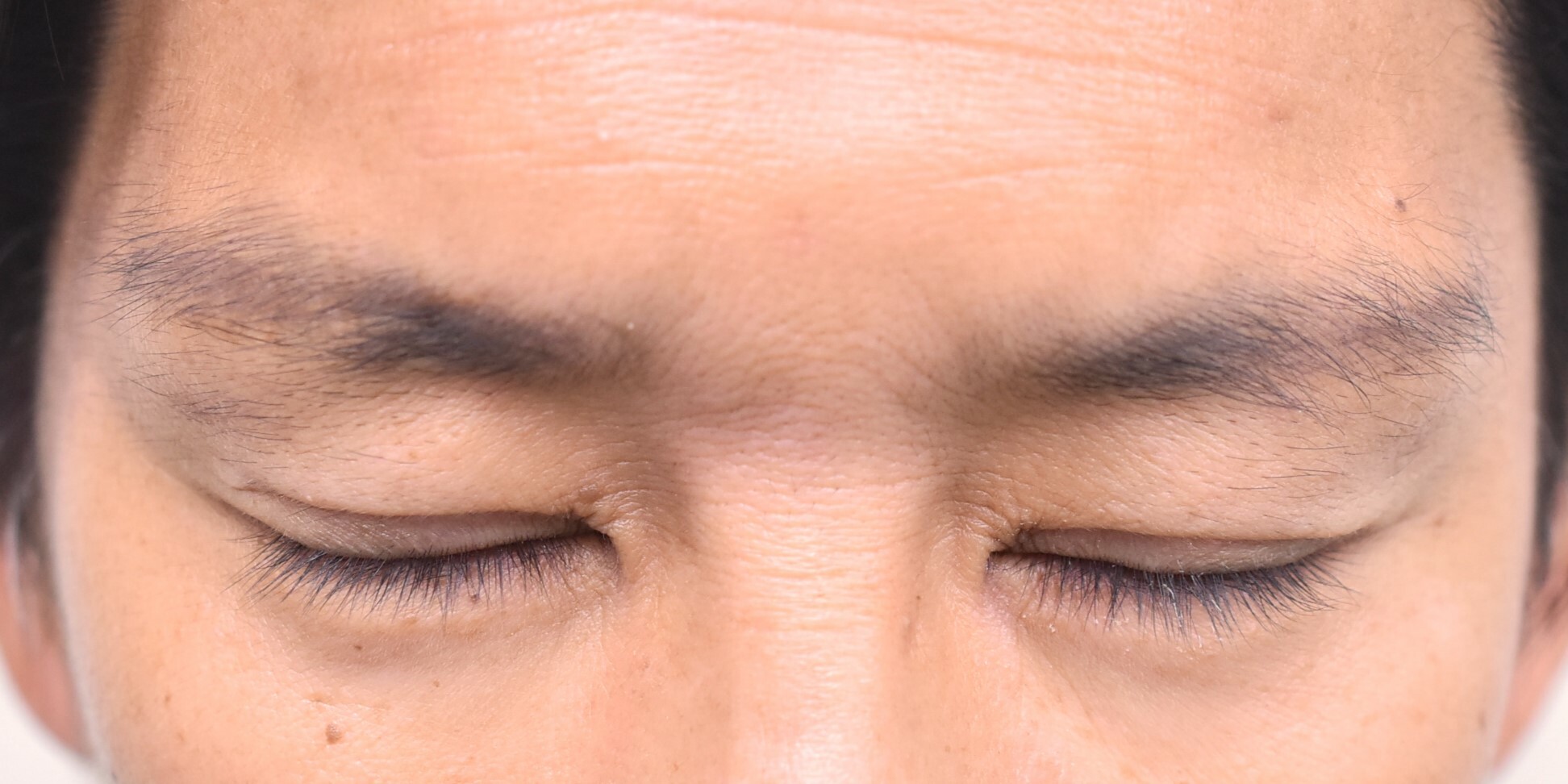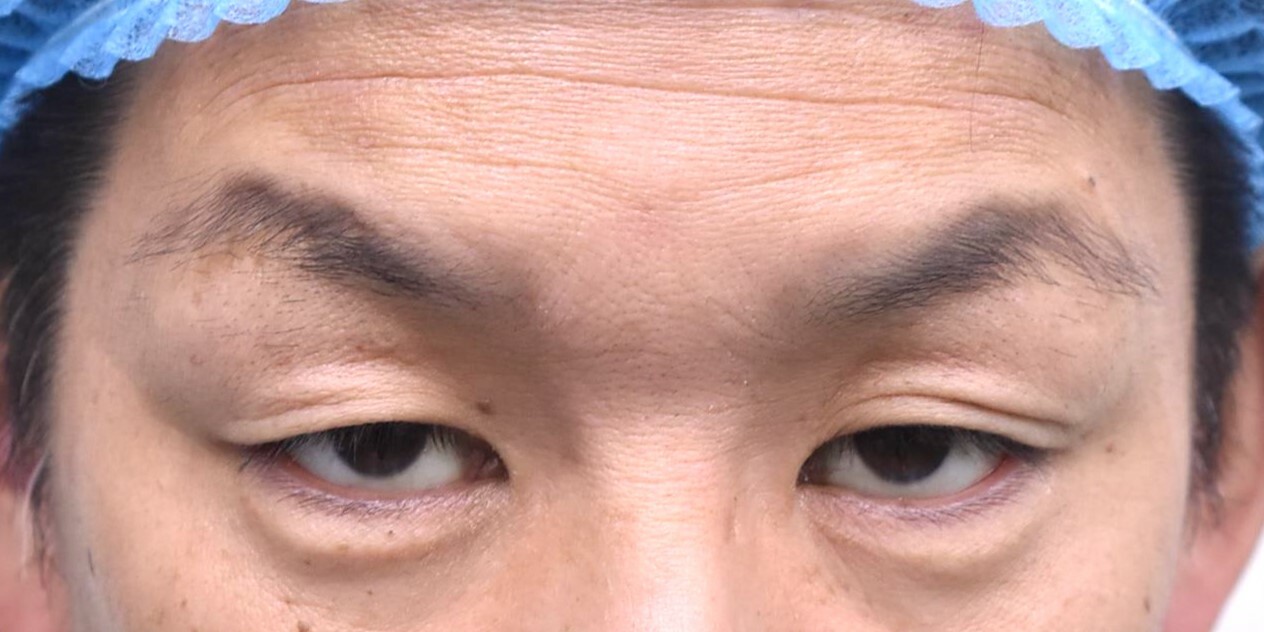 40代男性の全切開法+眼瞼下垂修正、たるみ切除の症例になります。写真の通り眉毛挙上が強く、開瞼も悪いため、二重ライン作成、たるみ切除、挙筋修正が行える全切開法を選択しました。