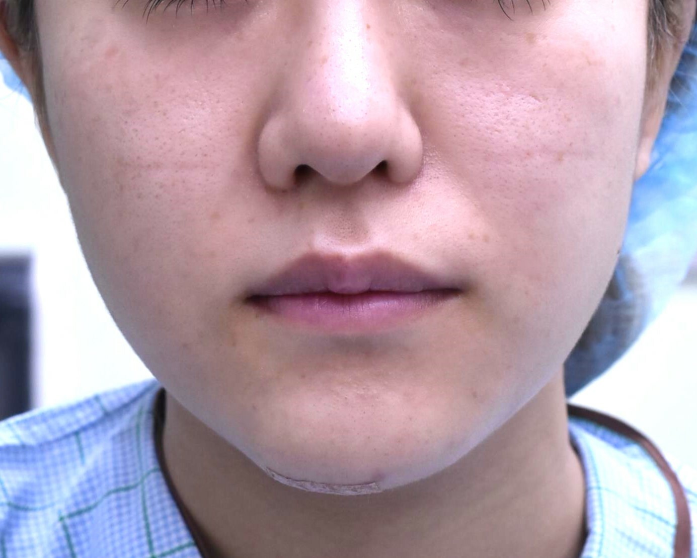 40代女性の下顎骨骨切り術になります。顎先を尖らせ、短くしたいとの希望にて前記手術行っています。