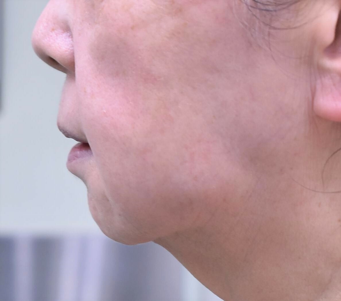 今までのブルドック状のたるみが引きあがり、輪郭の改善が行えました。