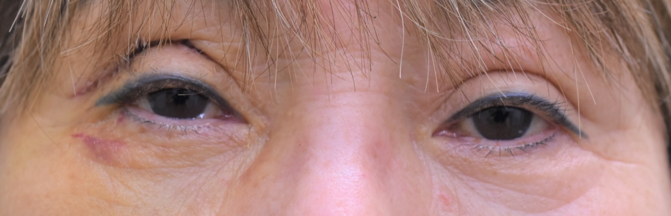 11mm幅と二重幅が広くハム目の予防のために重瞼ライン下余剰皮膚切除も併せて行っています。