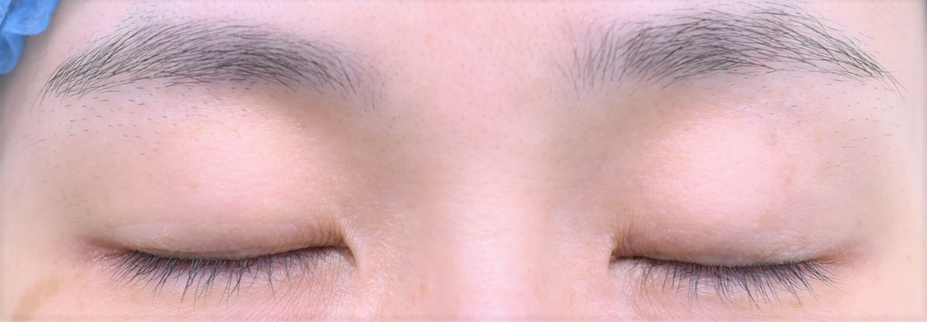 20代女性の全切開法 症例になります。過去に埋没法をされていますが、二重幅を広げて平行型(インアウトライン)にしたいとの希望があり、取りにくい二重を作るためにも全切開法を行うことになりました。