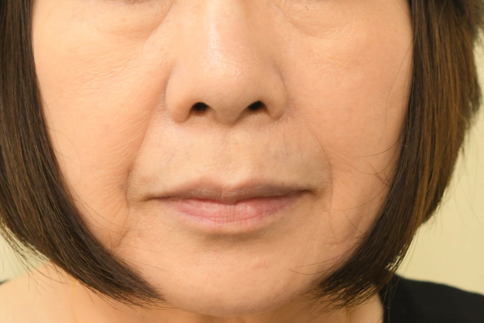 70代女性 鼻翼(小鼻)縮小外側切除症例になります。加齢とともに頭蓋骨の鼻孔にあたる頭蓋骨の穴が少しずつ大きくなるため、小鼻の横幅は少しずつ大きくなります。お若い頃と比べて小鼻が大きくなってきているのを治したいというご希望でした。