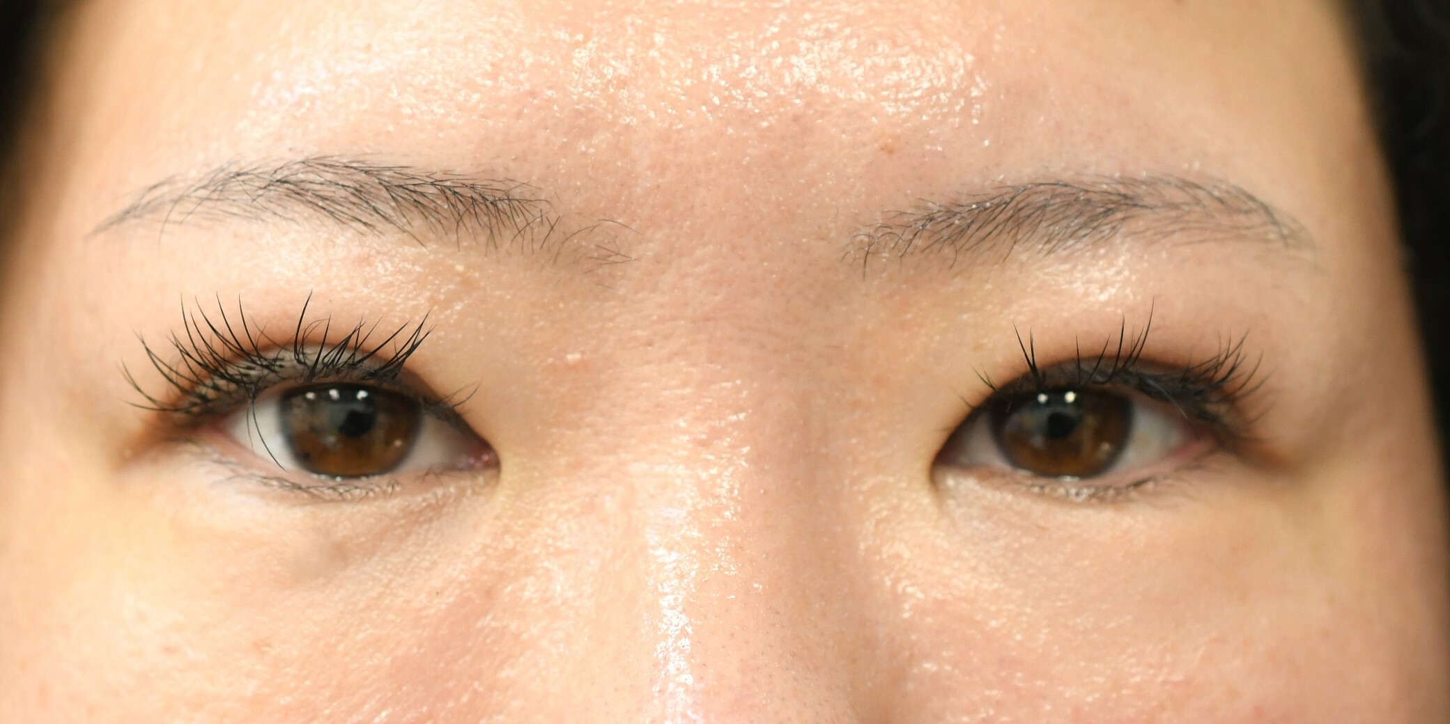 30代男性の全切開法症例です。男性俳優のような目にしたいとの希望にて、あまり広くない末広型で、まつ毛が跳ね上がるようなデザインで行いました。二重幅は7㎜。二重を広げるために、たるみを1.5㎜幅で切除し、挙筋腱膜前転による下垂修正も併せて行っています。また、まつ毛の生え際が上がるように、二重ライン~まつ毛側のたるみを切除し、さかさまつ毛修正も行いました。3M検診までに腫れ改善のためステロイド注射を1回行いましたが、すっきりとした瞼になりました。