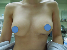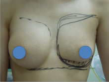 大胸筋下人工乳腺豊胸術を受け、