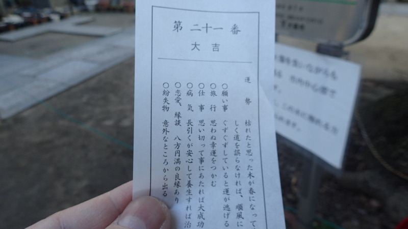 おみくじの結果は、こちらです。